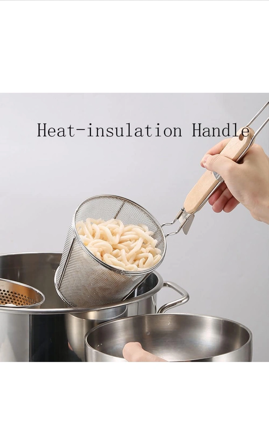 Stainless Steel Noodle Strainer with Wooden Handle