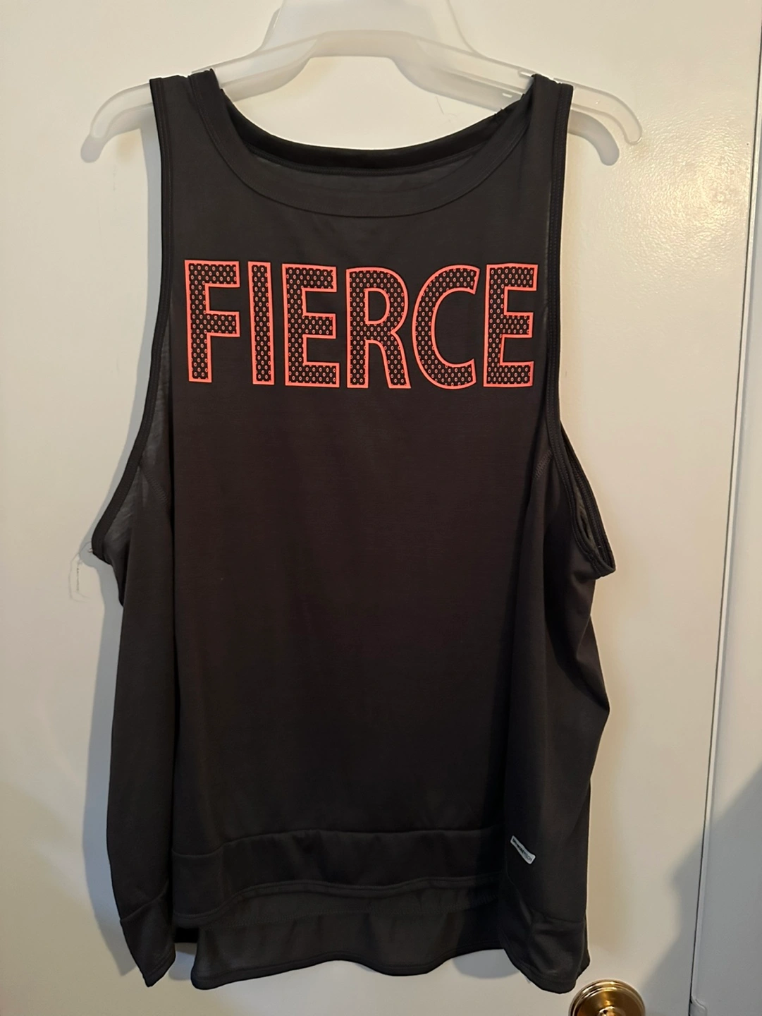 871Charcoal grey tank top with a coral colour fierce design. Dri-More Tech fabric. Brand new, never worn. Smoke free home