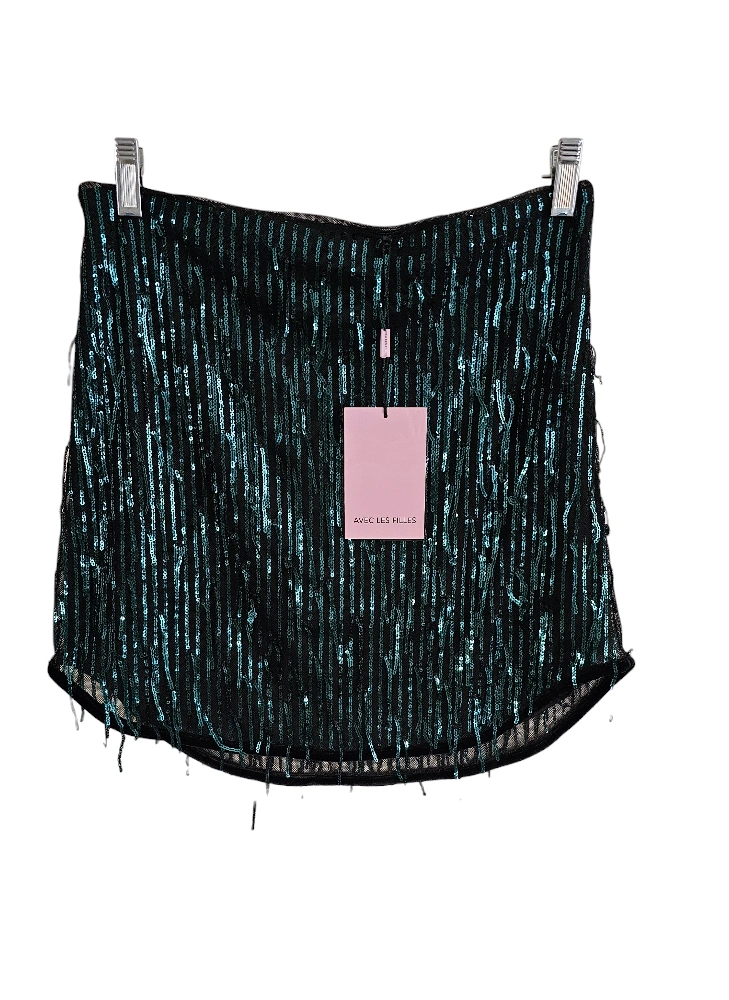 Avec Les Filles Green Teal Sequined Fringe Mini Skirt