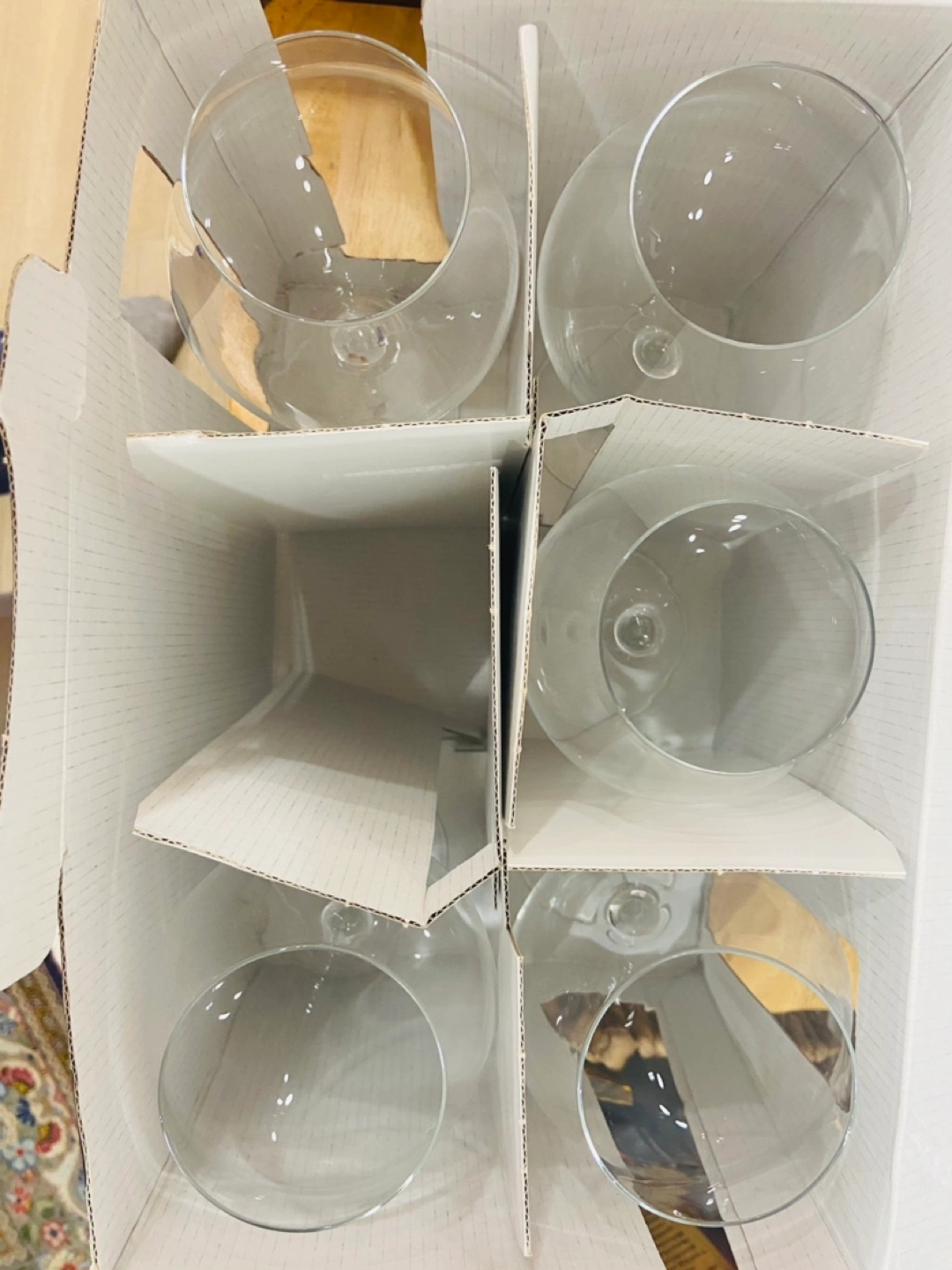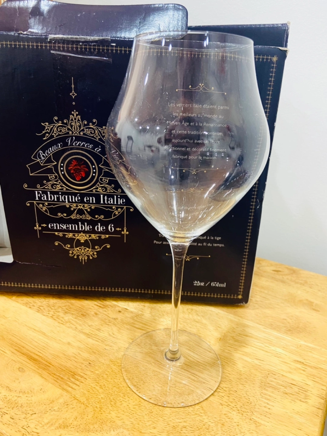 22oz / 651ml. 5 wine glasses with no chips or cracks, just one out of 6 broken.