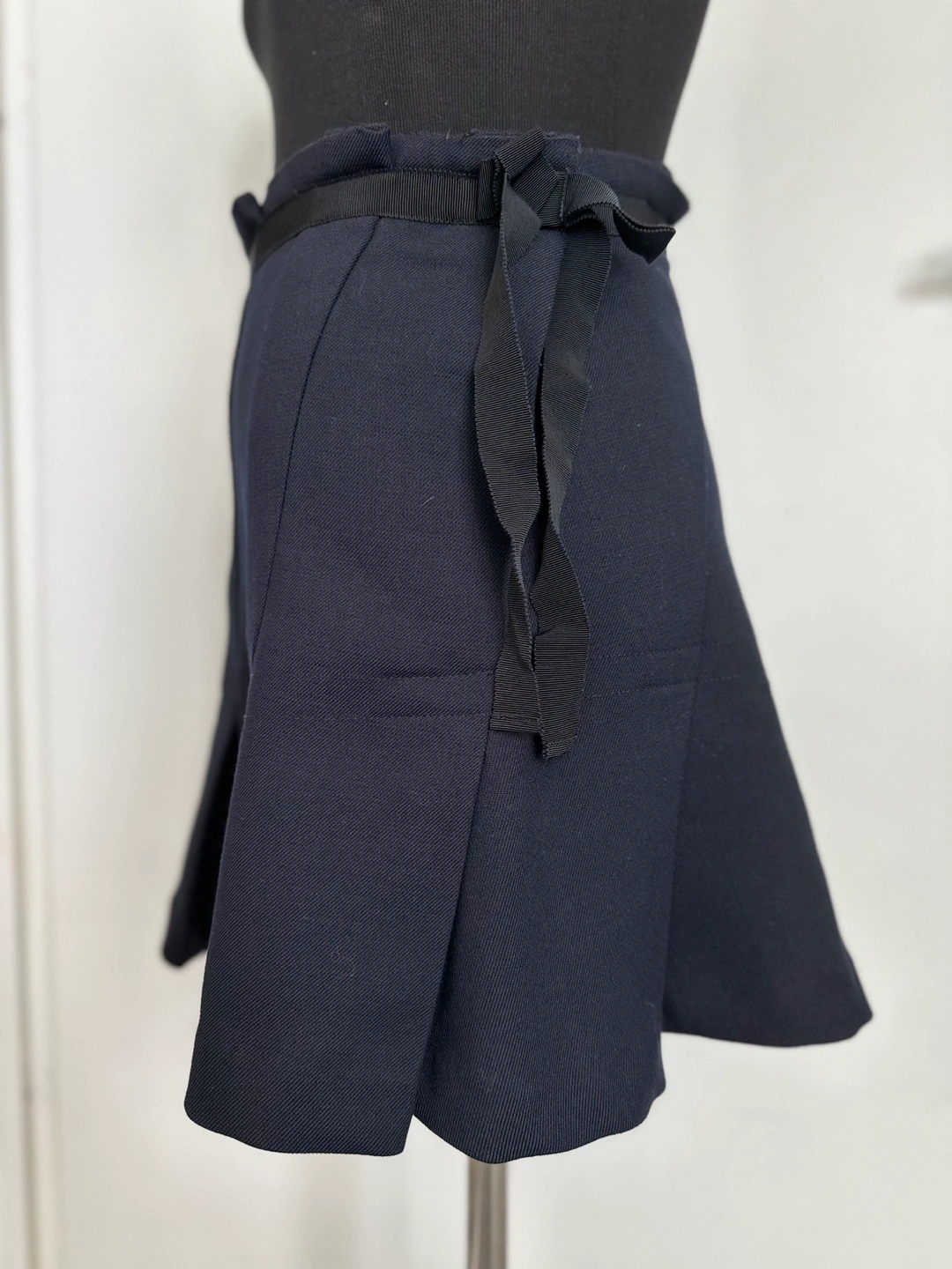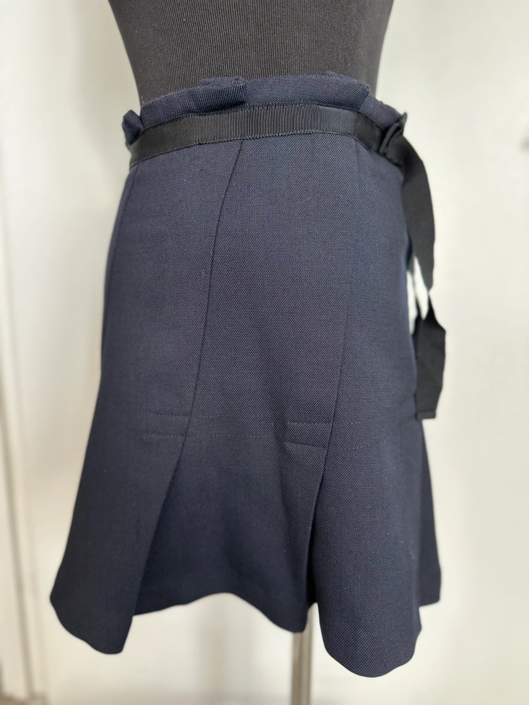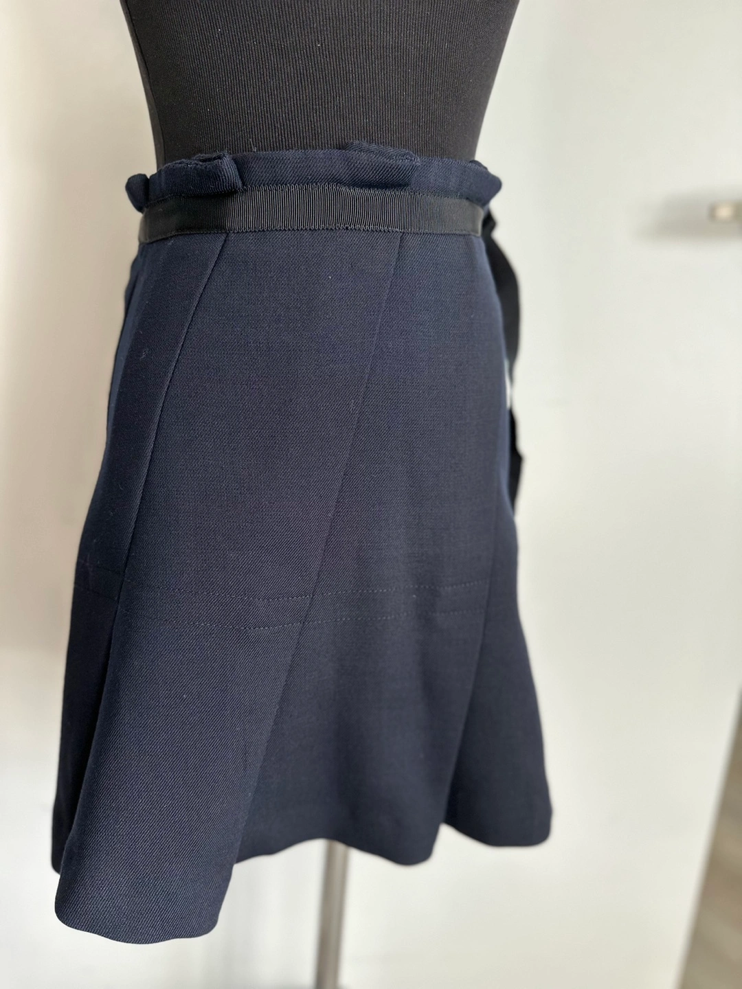 991Sandro Paris navy paper bag skirt w/ black ribbon bow & pleated bottom Size: XS Length: 43 cm In a great condition