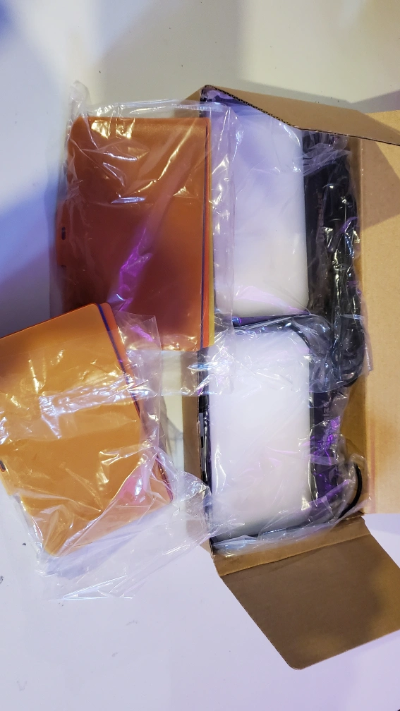 LED panel light, adjustable brightness. Tripod stand. 5 color filters (red, orange, white, blue, and yellow). USB powered.