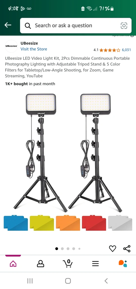 UBeesize LED Video Light Kit, 2Pcs Dimmable Continuous Portable Photography Lighting with Adjustable Tripod Stand & 5 Color Filters for Tabletop/Low-Angle Shooting, for Zoom, Game Streaming, YouTube https://a.co/d/f2vnnFA