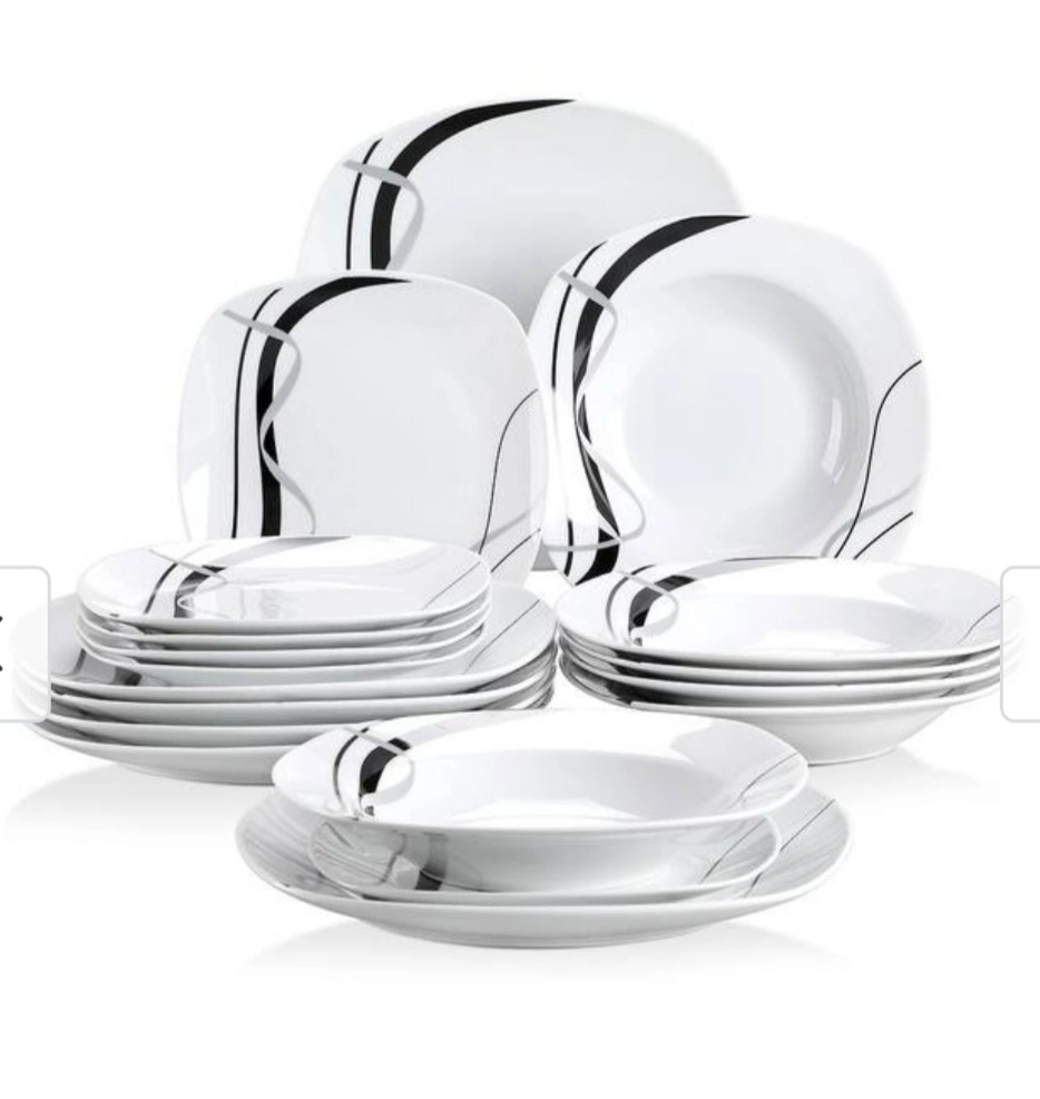 Porcelain Dinnerware Set 24 Piece - Black and Grey Design