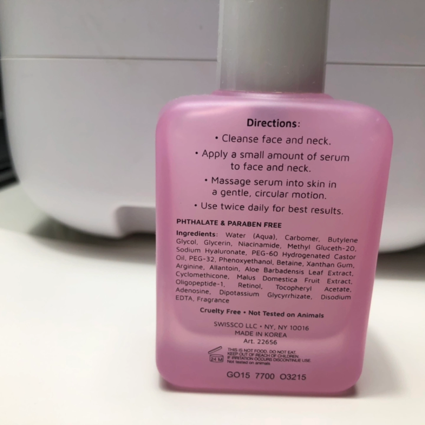 Retinol + Hyaluronic Acid anti-aging serum. Phthalate and Paraben free. 60 ml, made in Korea.
