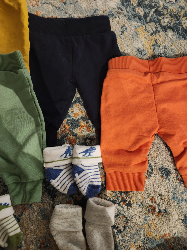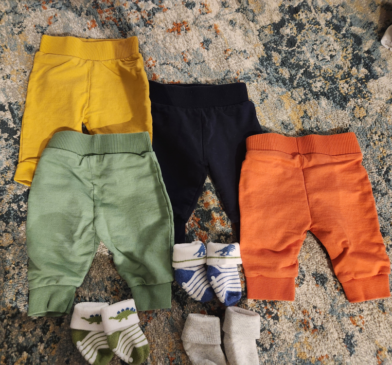 Juniors 0-3 months baby trousers. Hardly used, in excellent condition. Baby outgrew these very fast and didn't get a chance to wear them.