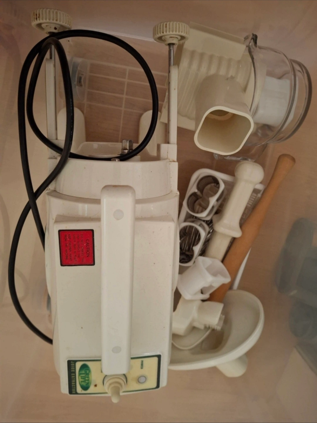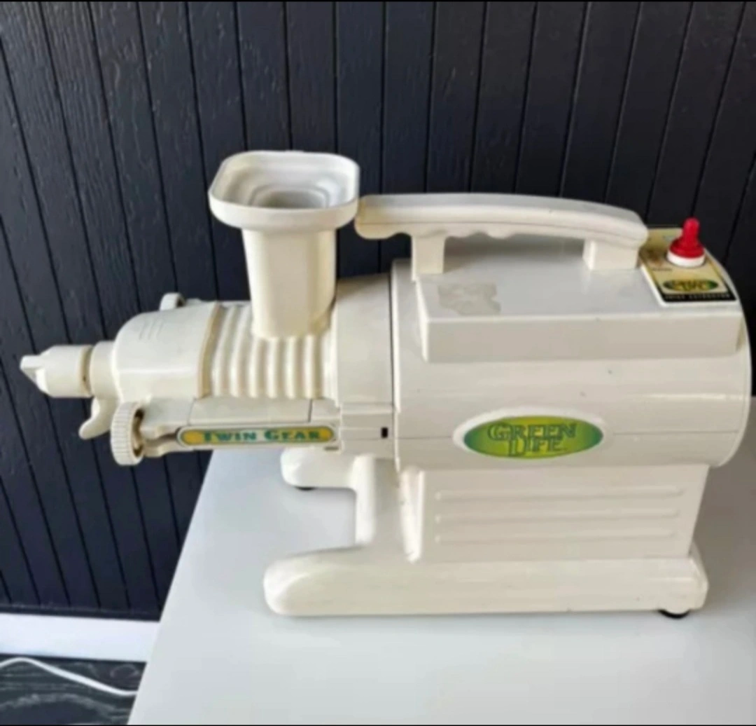 (Reposted) A Tribest Green Life Juice Extractor Twin Gear, HeavyDuty. It comes with all the parts/attachments shown - gears, glass, a pusher, lid, pulp container, filter screens etc. This machine has been lightly used and is perfect working condition, but there are some minor stains on the exterior. We stopped drinking juice so this has been sitting in storage for a bit. Previously bought (2nd hand from The Big Carrot) for $700. Doesn't come with the manual but it's available online for free + YT tutorials ☺️ Open to reasonable offers
