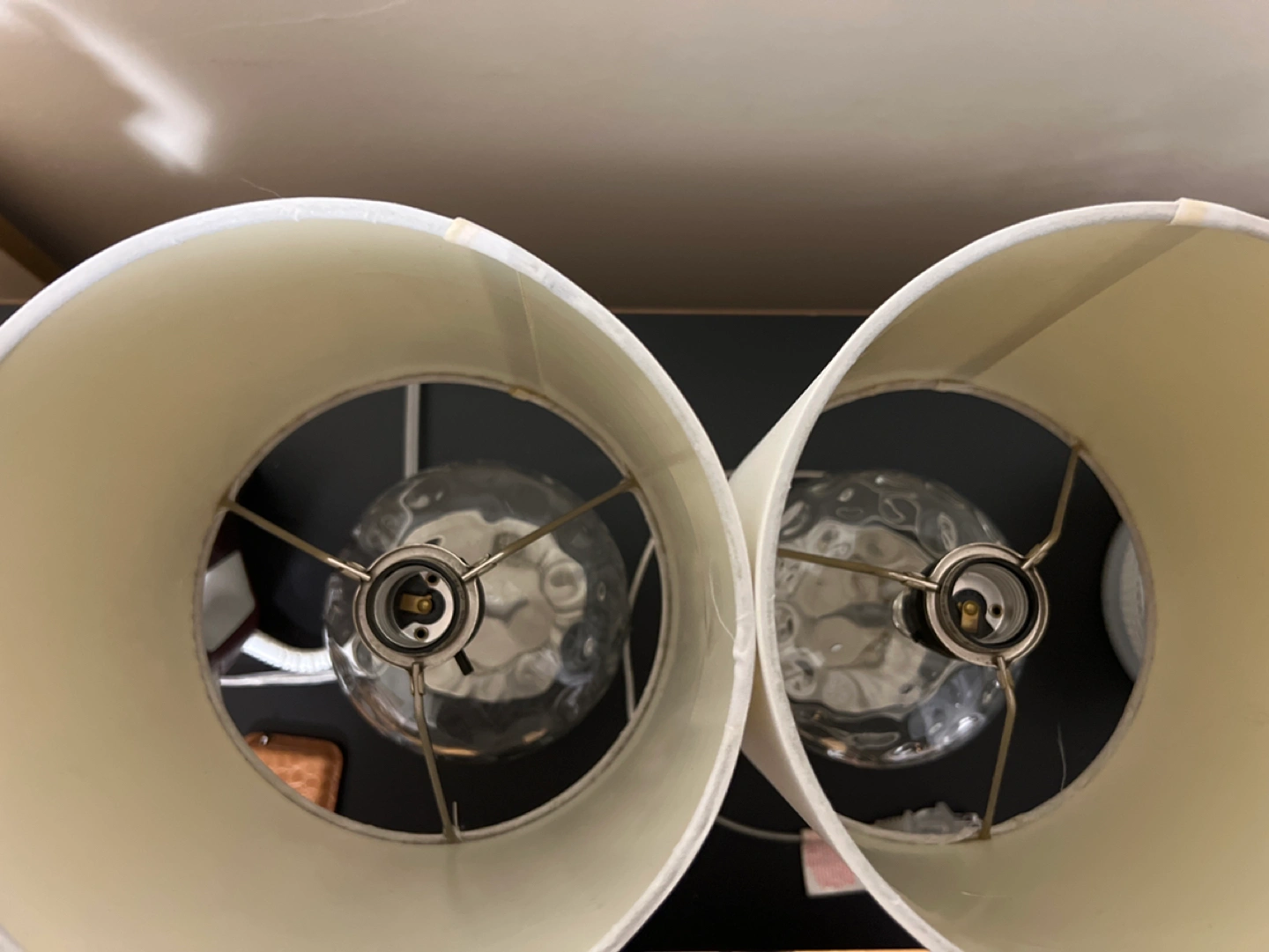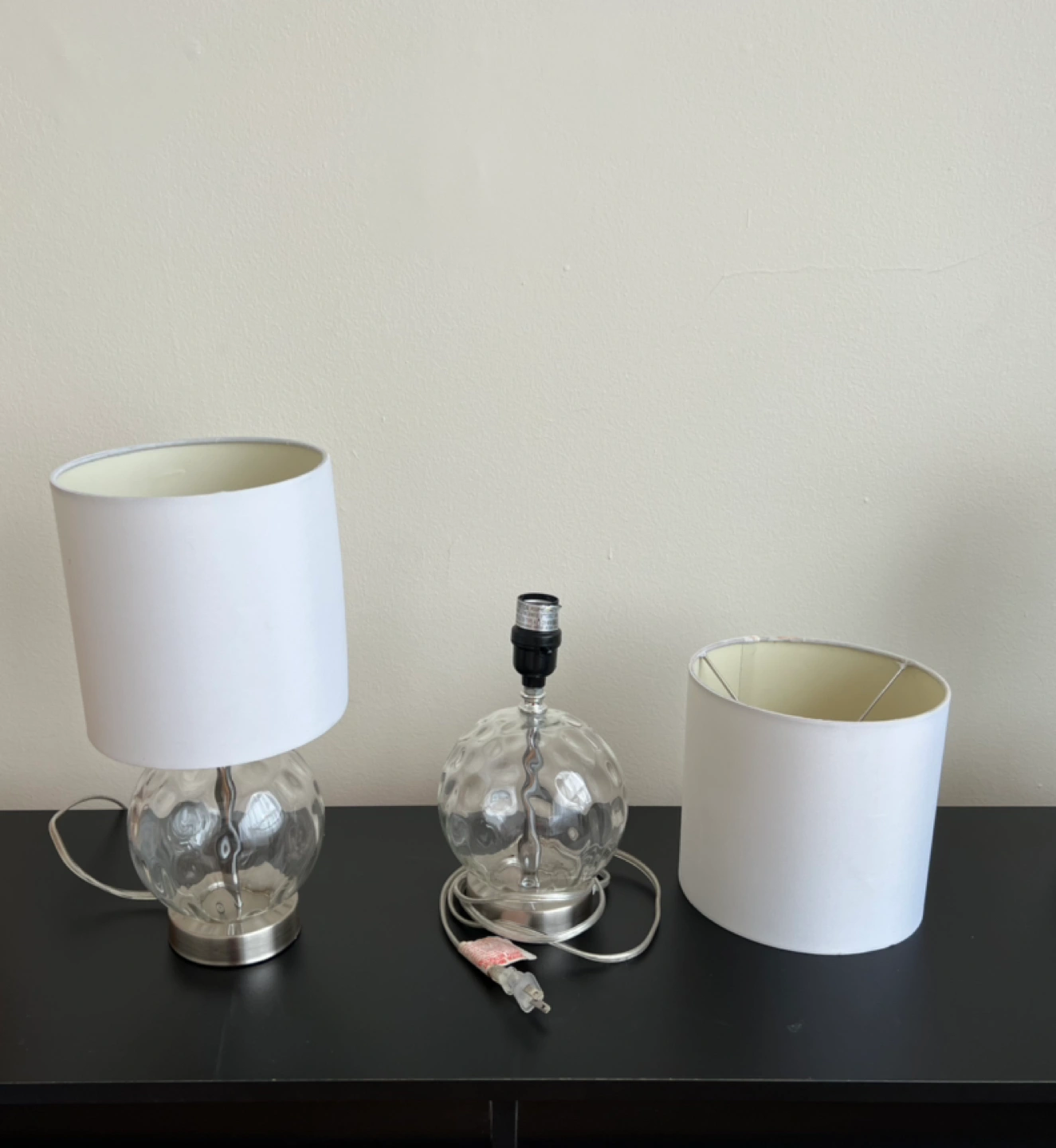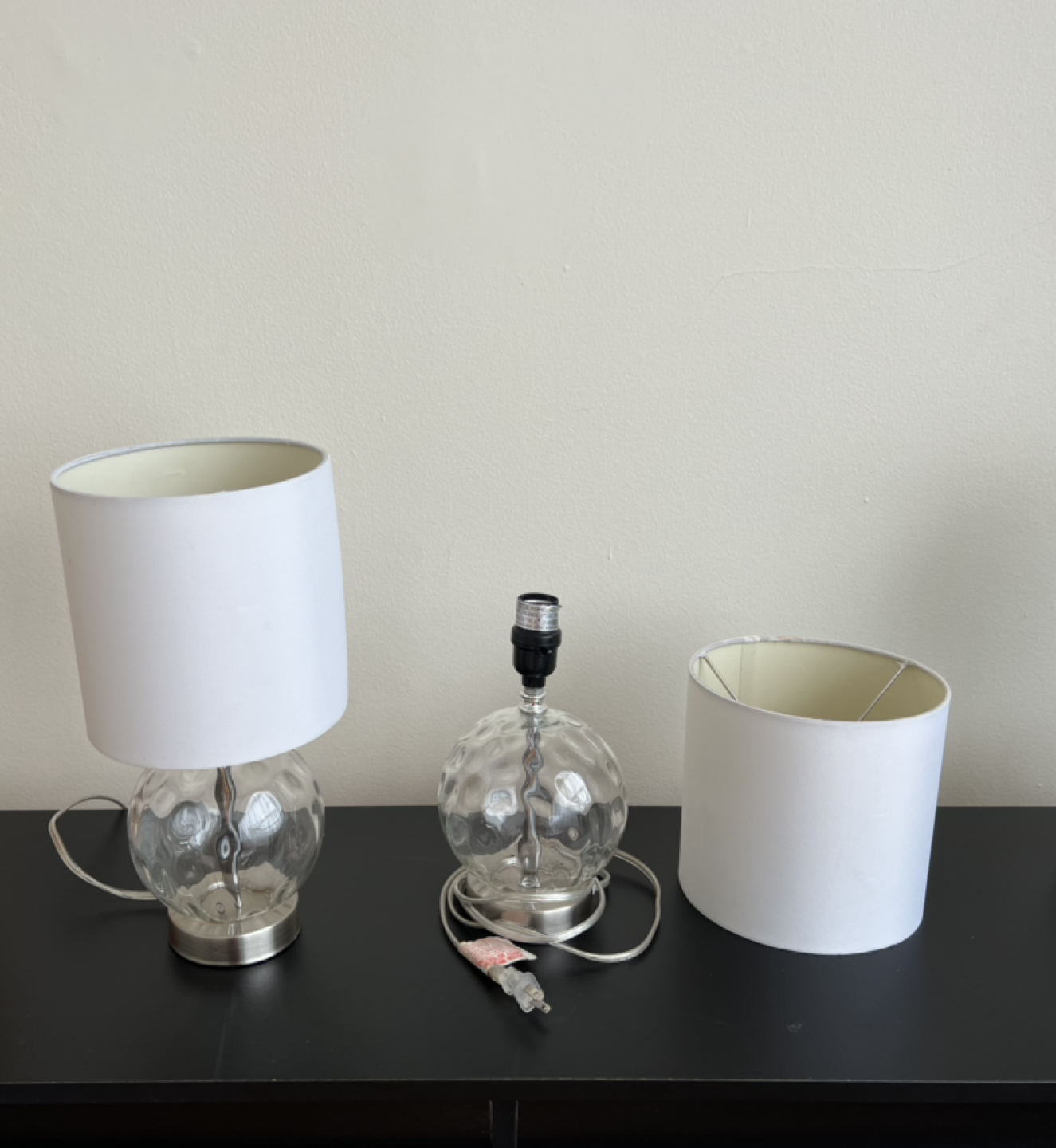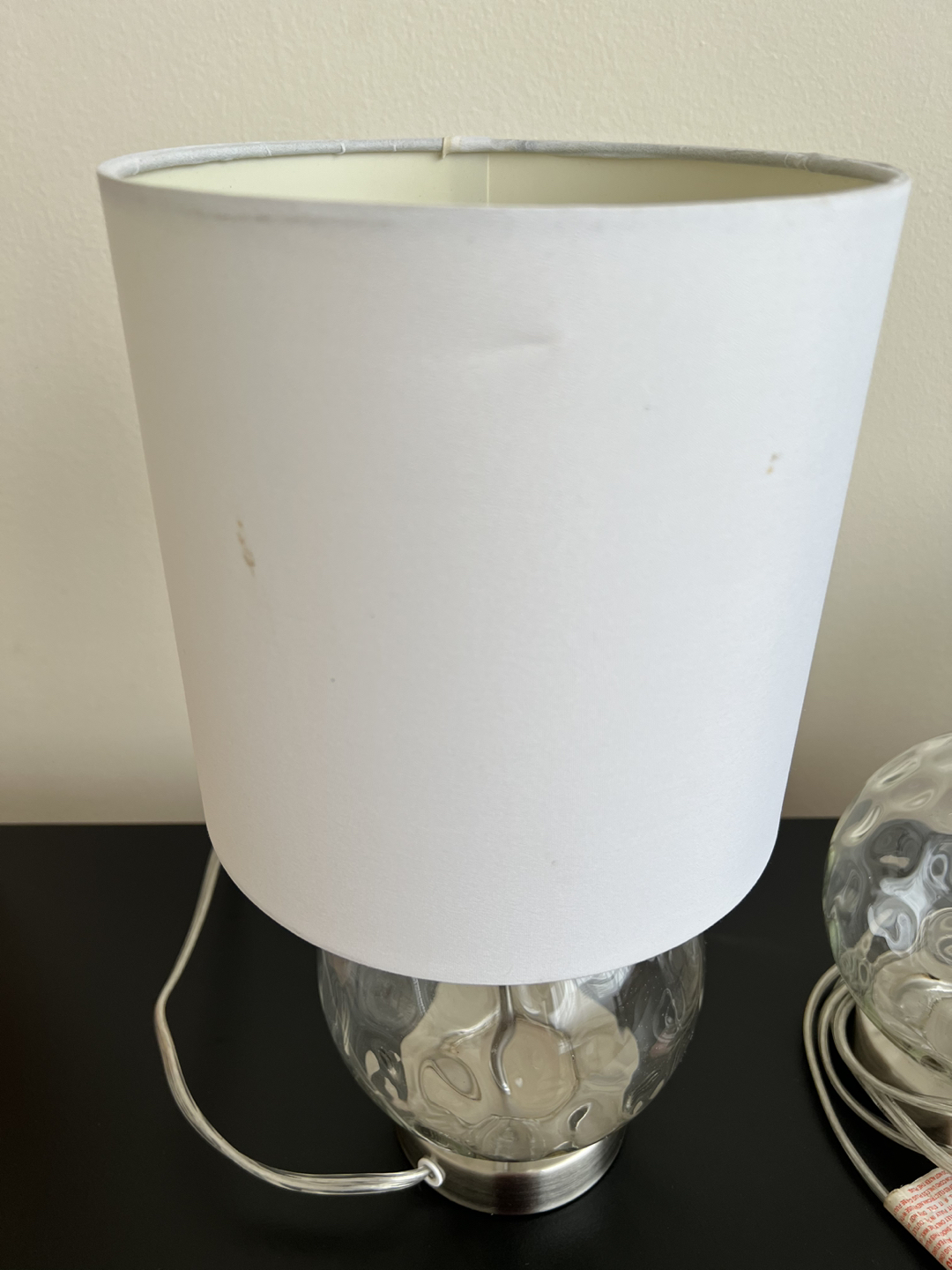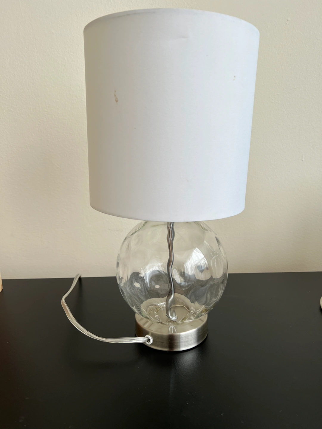 Lamps in style of famous west elm lamp. Changing them with smaller ones since I have smaller night stands now. One has a really small brown stain on it which can be easily hidden.