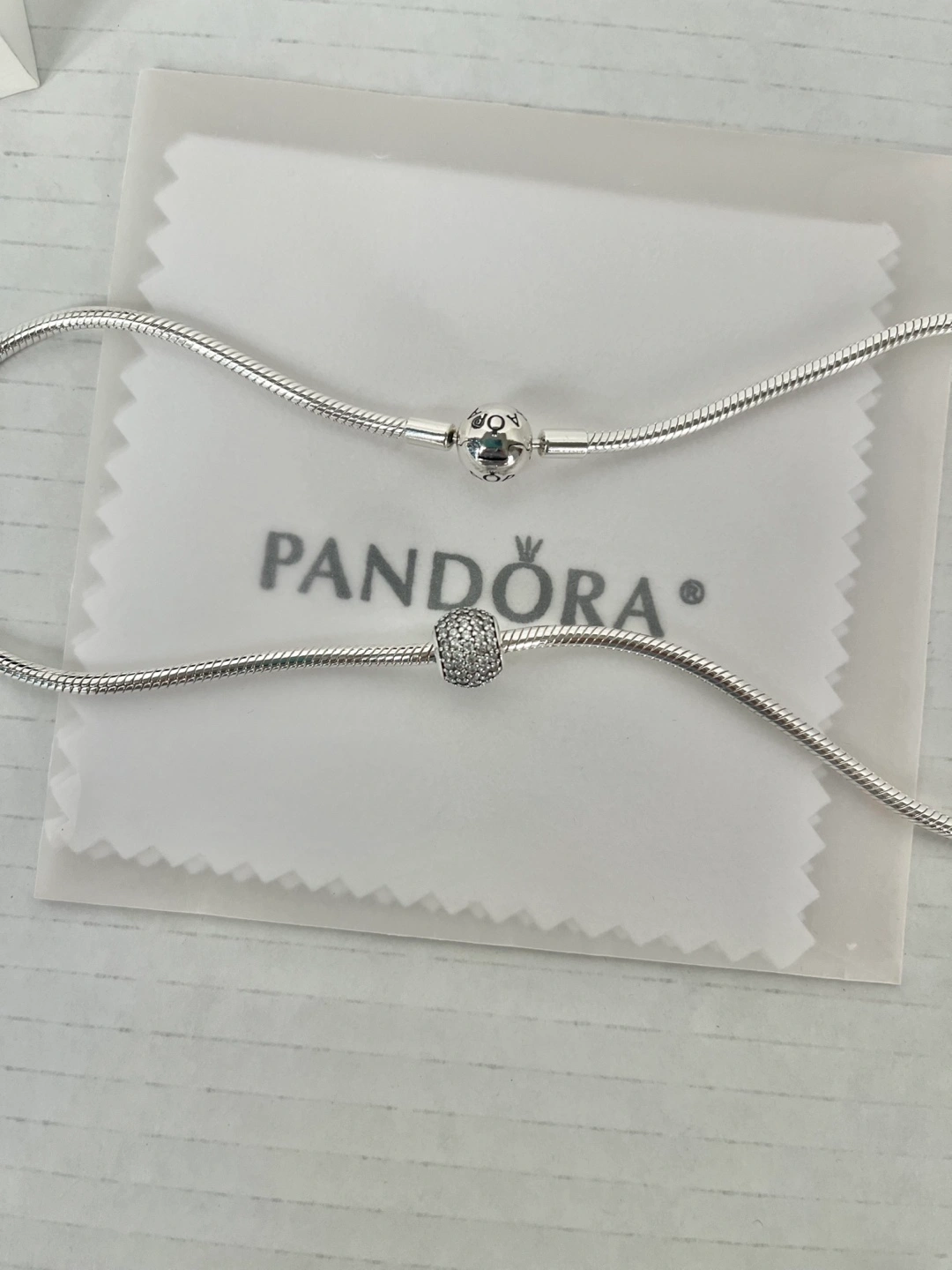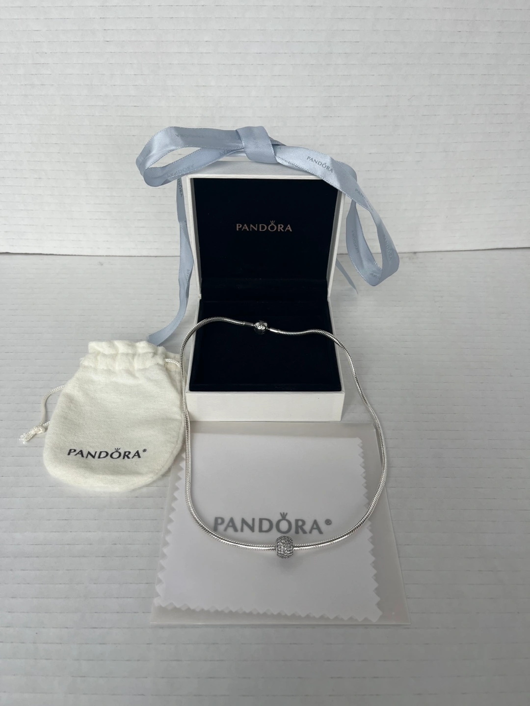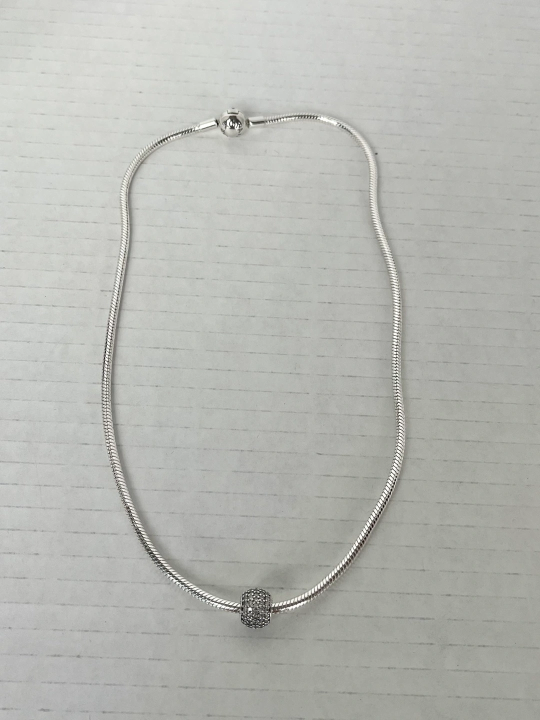 • Authentic PANDORA Moments Snake Chain Necklace with Clear Pave Lights Cubic Zirconia Charm (Set)