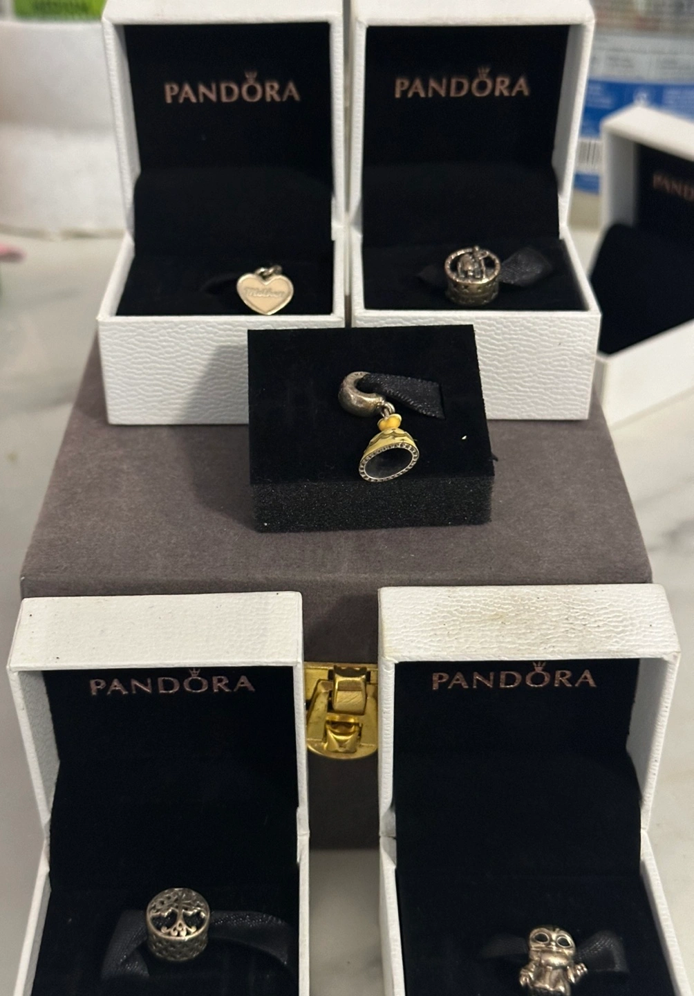 Pandora bracelet and charms, the size can be adjusted. Real Pandora jewelry. Can make a good gift, or accessory. Let me know if you have any questions!