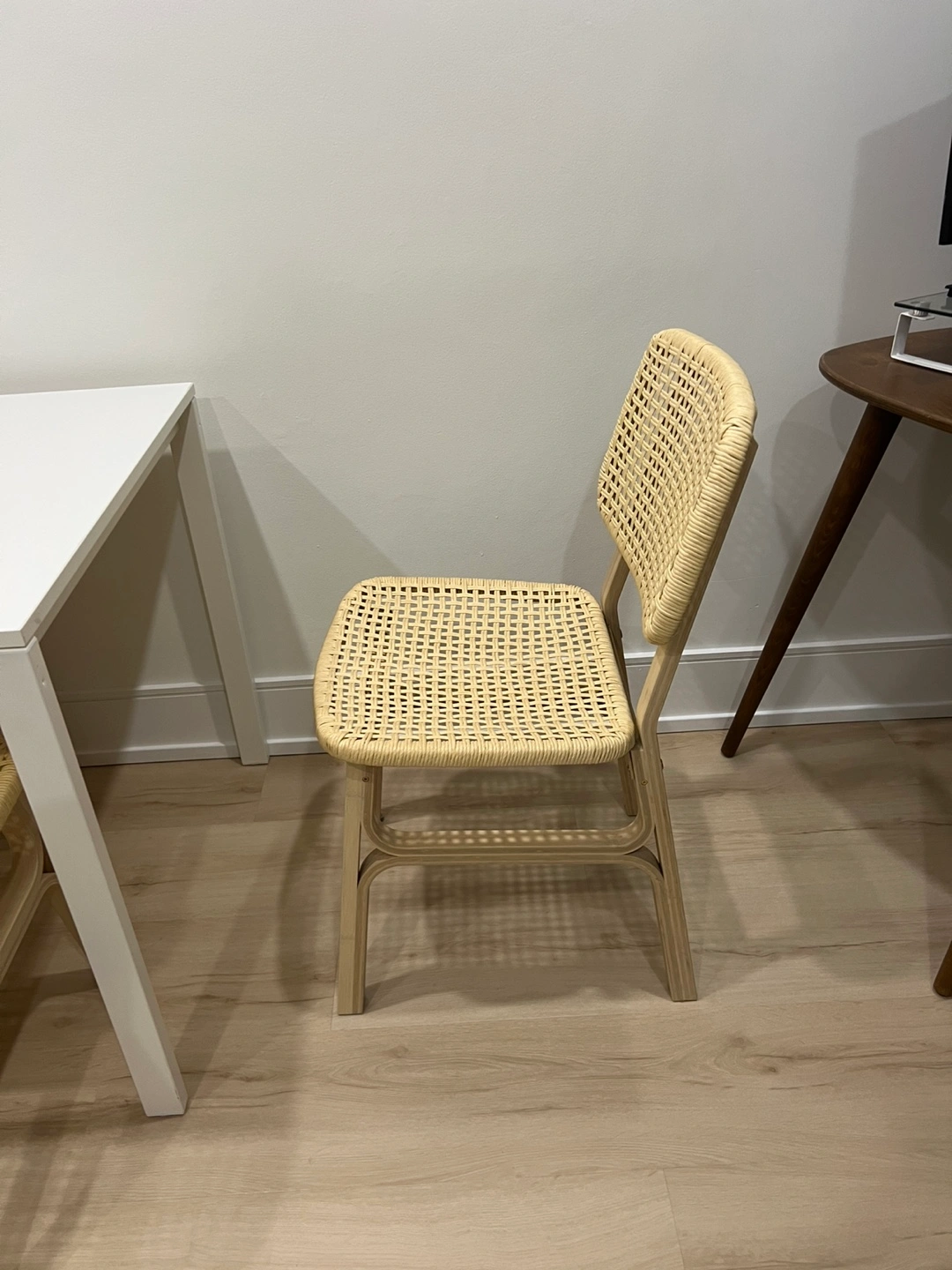 The table retails for $46 at IKEA. Each chair retails for $150 each.