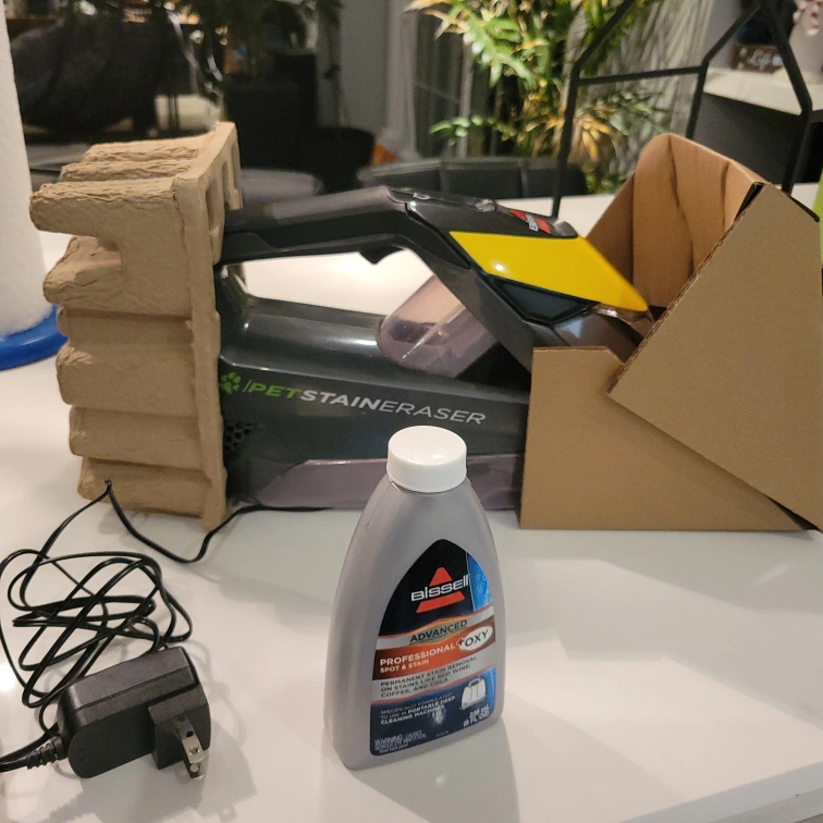 Cordless, rechargeable pet stain cleaner. Includes a bottle of Bissell Advanced Formula Oxy. Includes charging cable, cleaning formula, and nozzle. pick up at weston rd and Rutherford rd. Cash only pls.