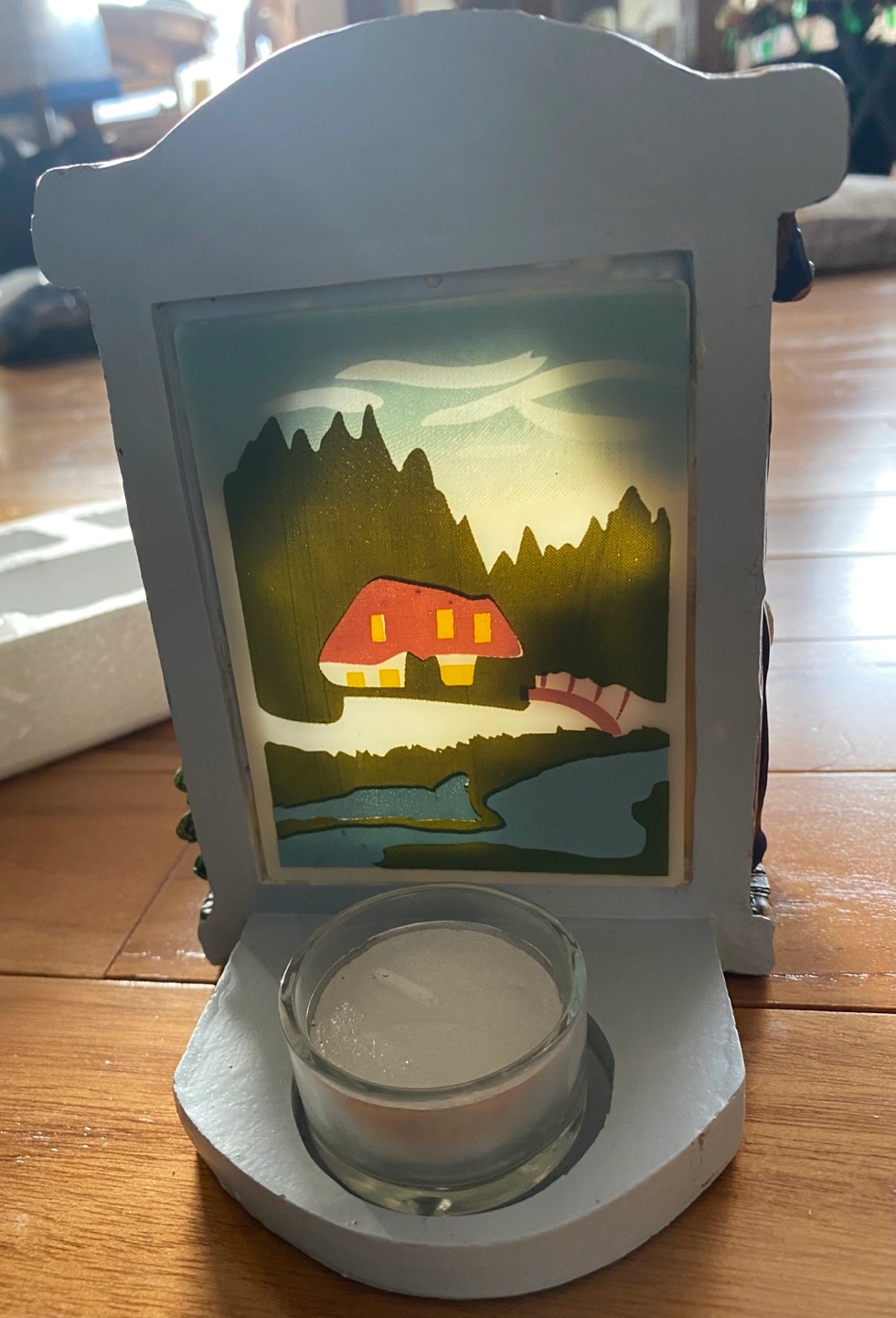 New in box Christmas tea light. Approx 6.5 inches high x 4.25 inches wide. Will include candle and holder. No smoking or pet household. Pick up in Scenic Acres NW