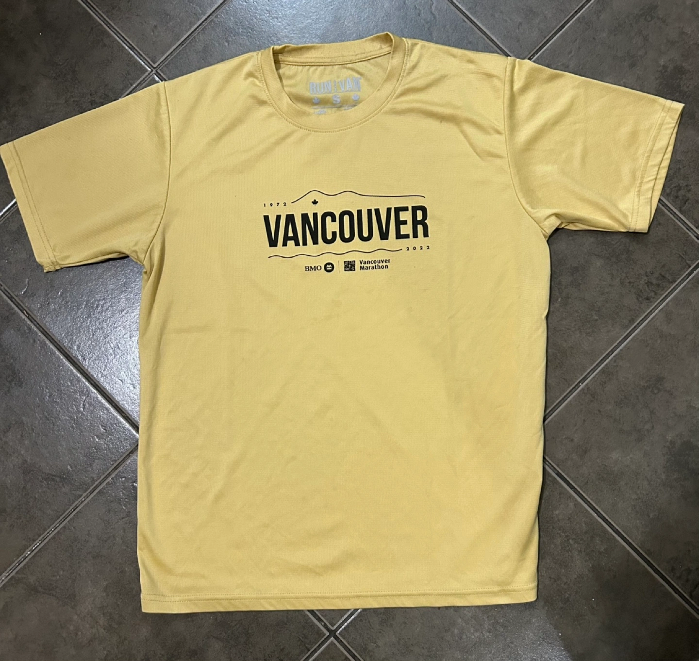 175Yellow t-shirt from Vancouver Sun Run 2022. Size: Small.