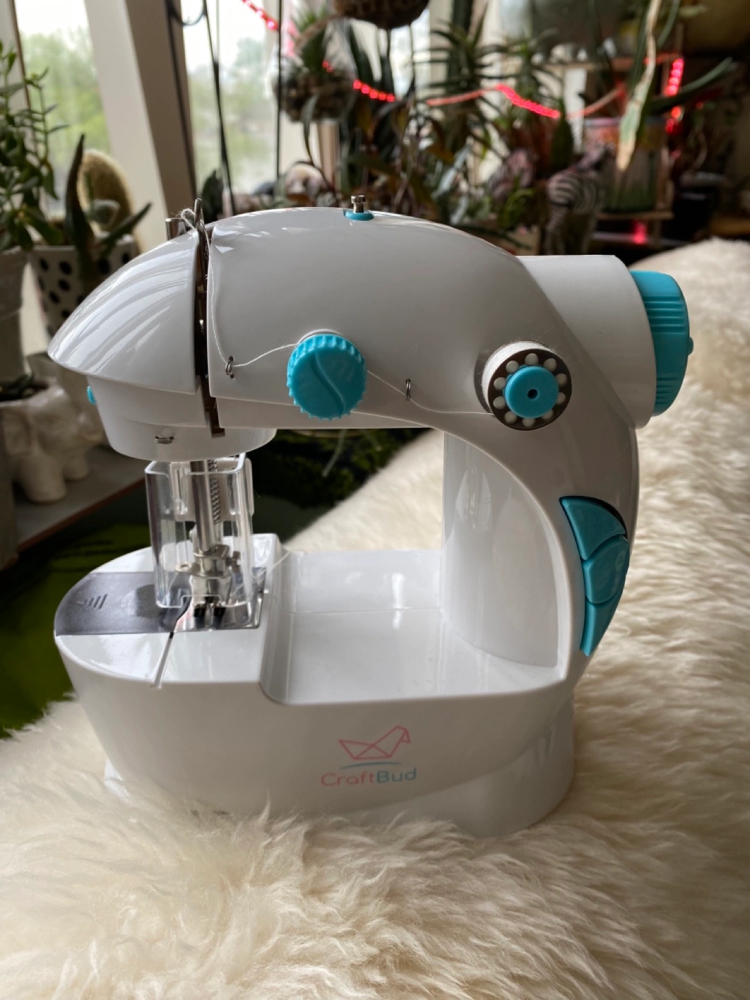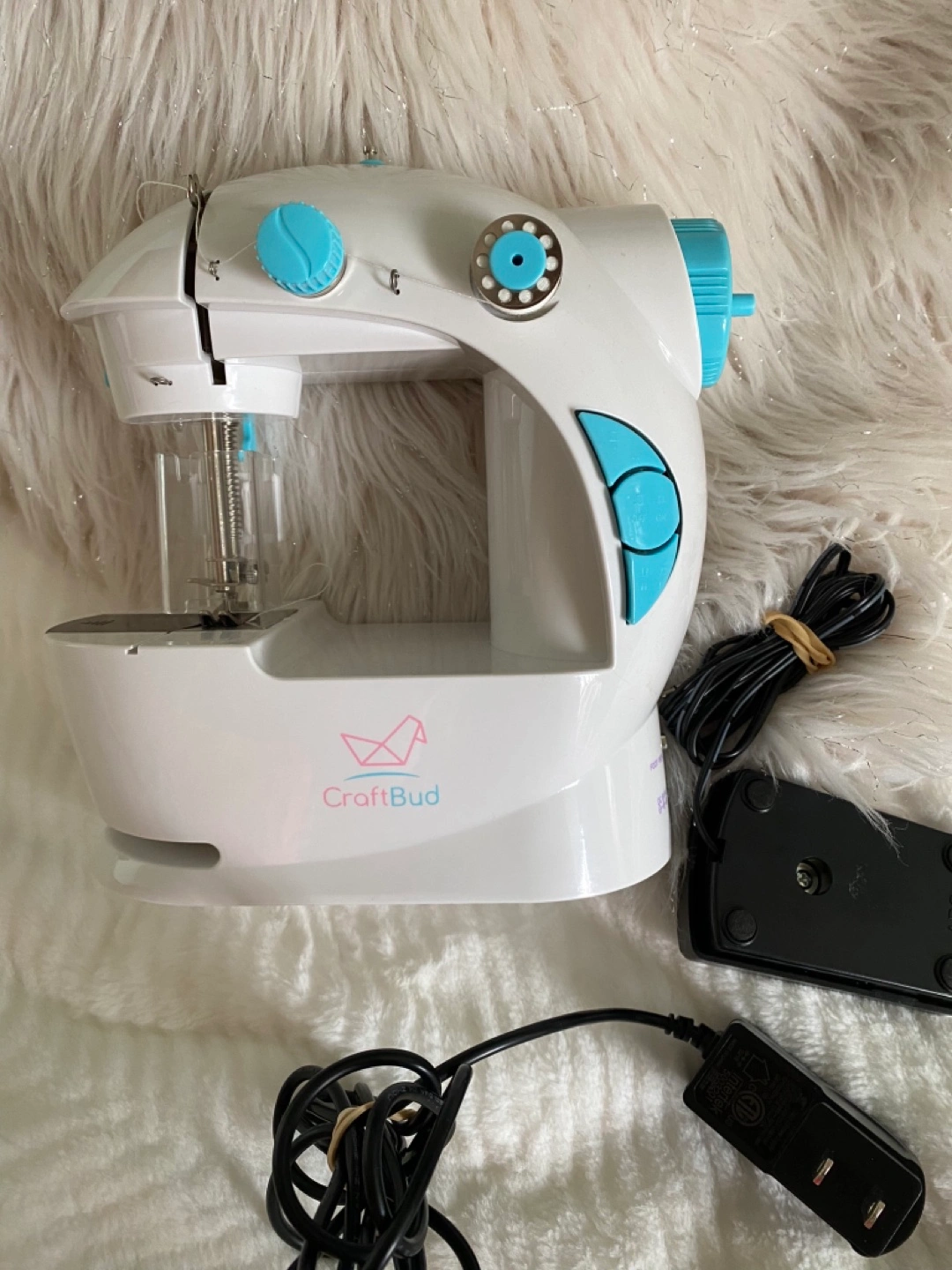 Kids, sewing machine, finger guard, mini electric, sewing machine with footpedal (blue).
