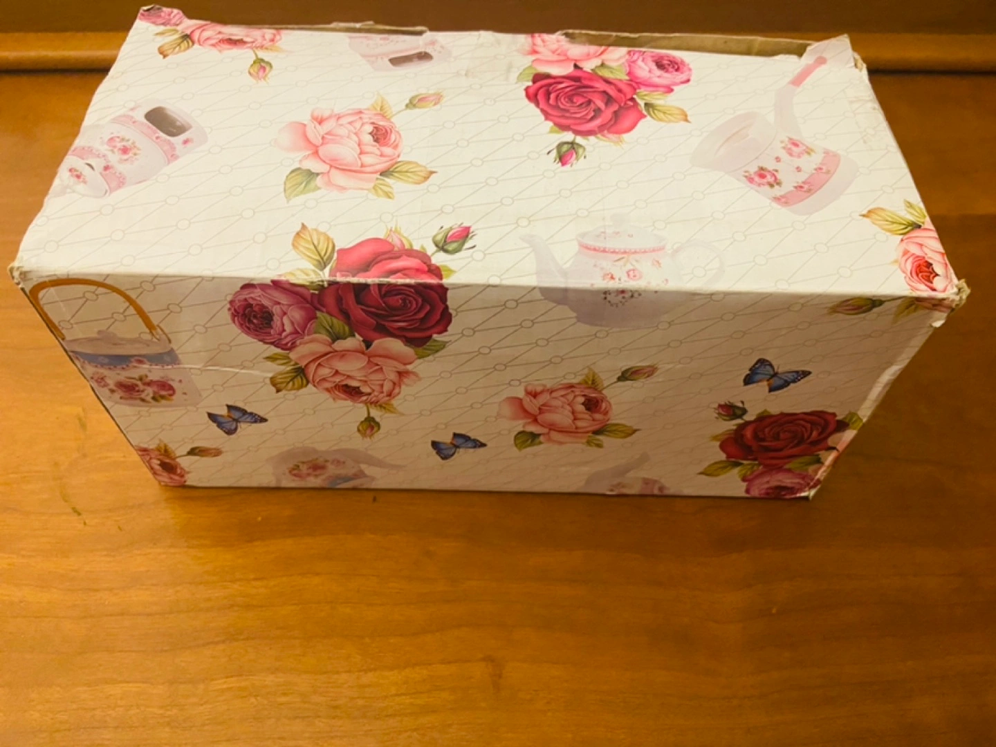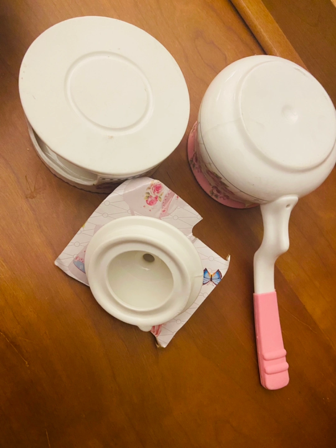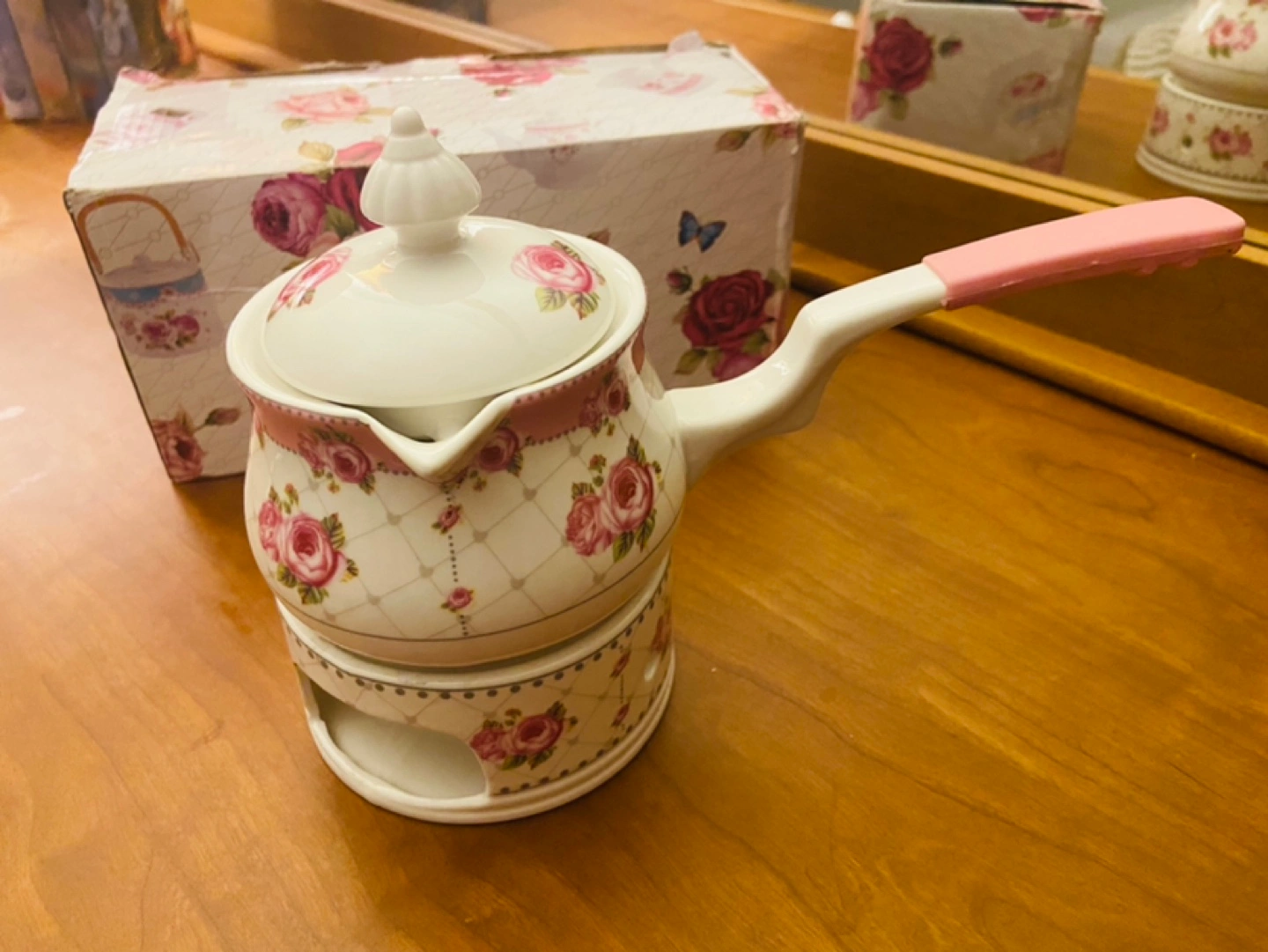 Teapot Set Garden Ceramic. Pink Floral Pattern, Includes a pink handle with Warmer Set.
