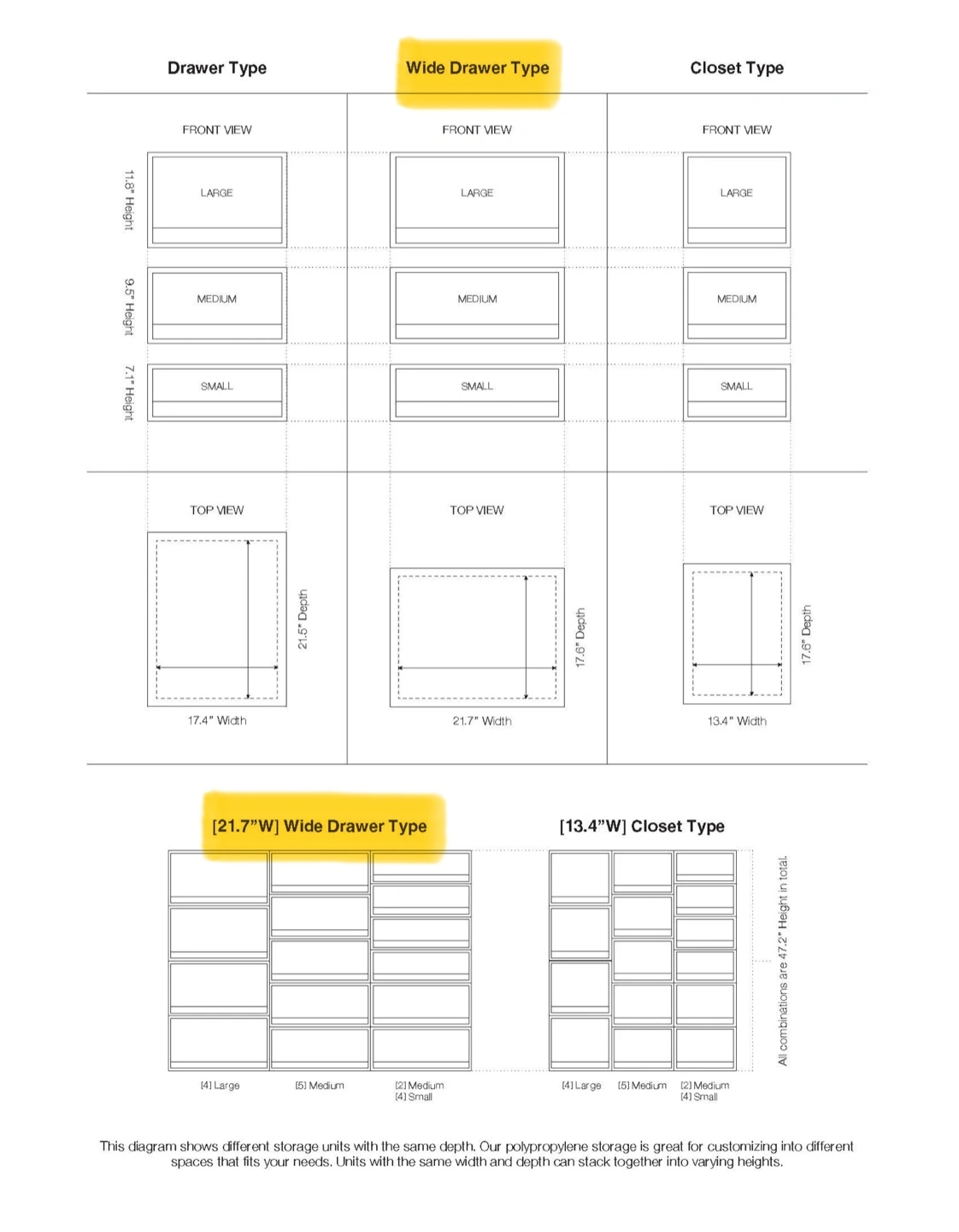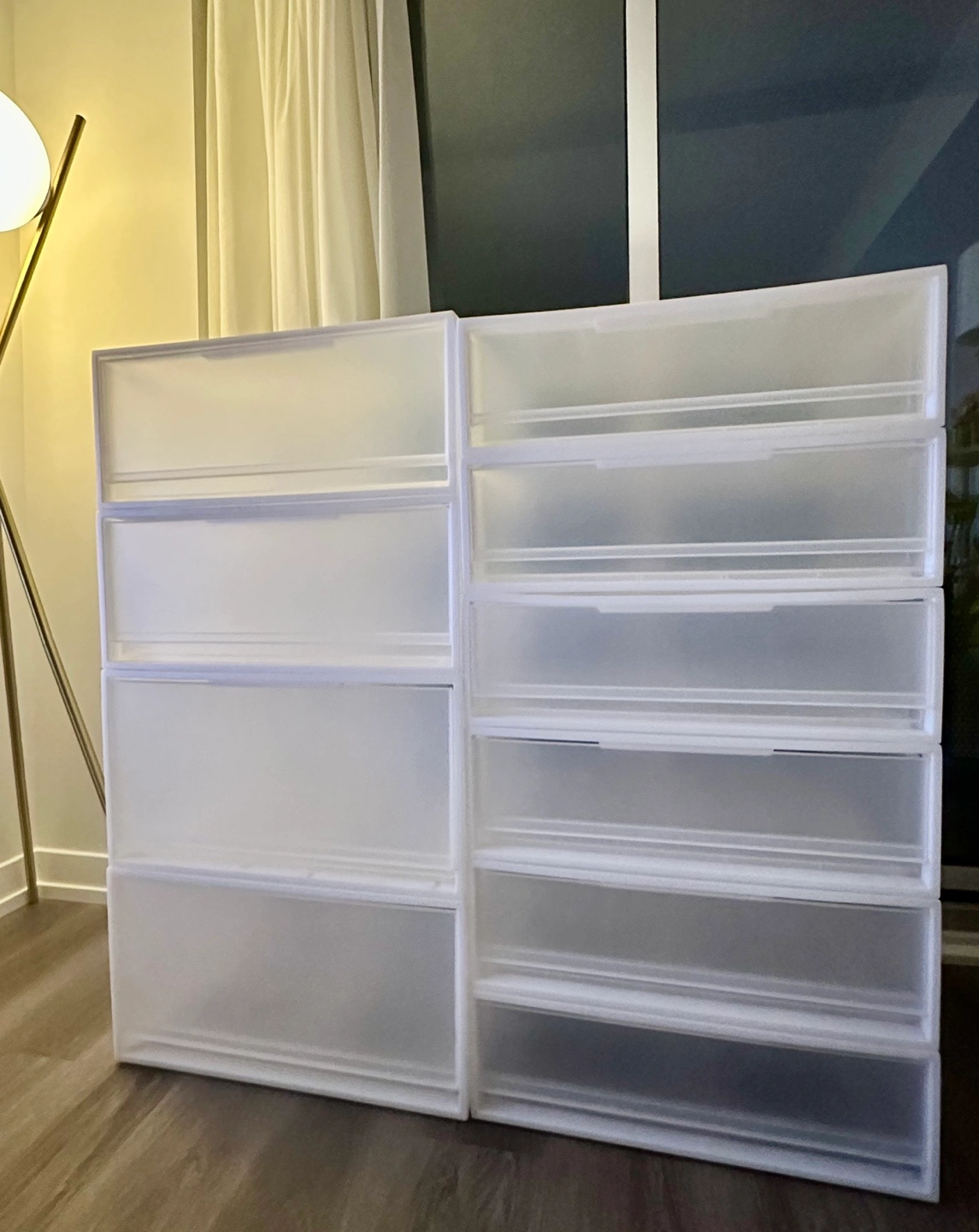 Bought from MUJI in Dec 2022. MUJI Polypropylene Storage Case Drawer Wide Type (W55 x D44.5 cm) Set of 10 clear plastic drawers - • 6 Small • 2 Medium • 2 Large More details - https://muji.ca/products/pp-storage-case-drawer-wide?variant=37943791026364 Dimensions (only height difference) - • Small (W55 x D44.5 x H18 cm) • Medium (W55 x D44.5 x H24 cm) • Large (W55x D44.5 x H30 cm) Current Retail Prices - • Small: $34.9 each (Pre-Tax) • Medium: $39.9 each (Pre-Tax) • Large: $44.9 each (Pre-Tax) $100 you can have them all! Open to offers! Only available for pickup at Downtown Toronto (Harbourfront)