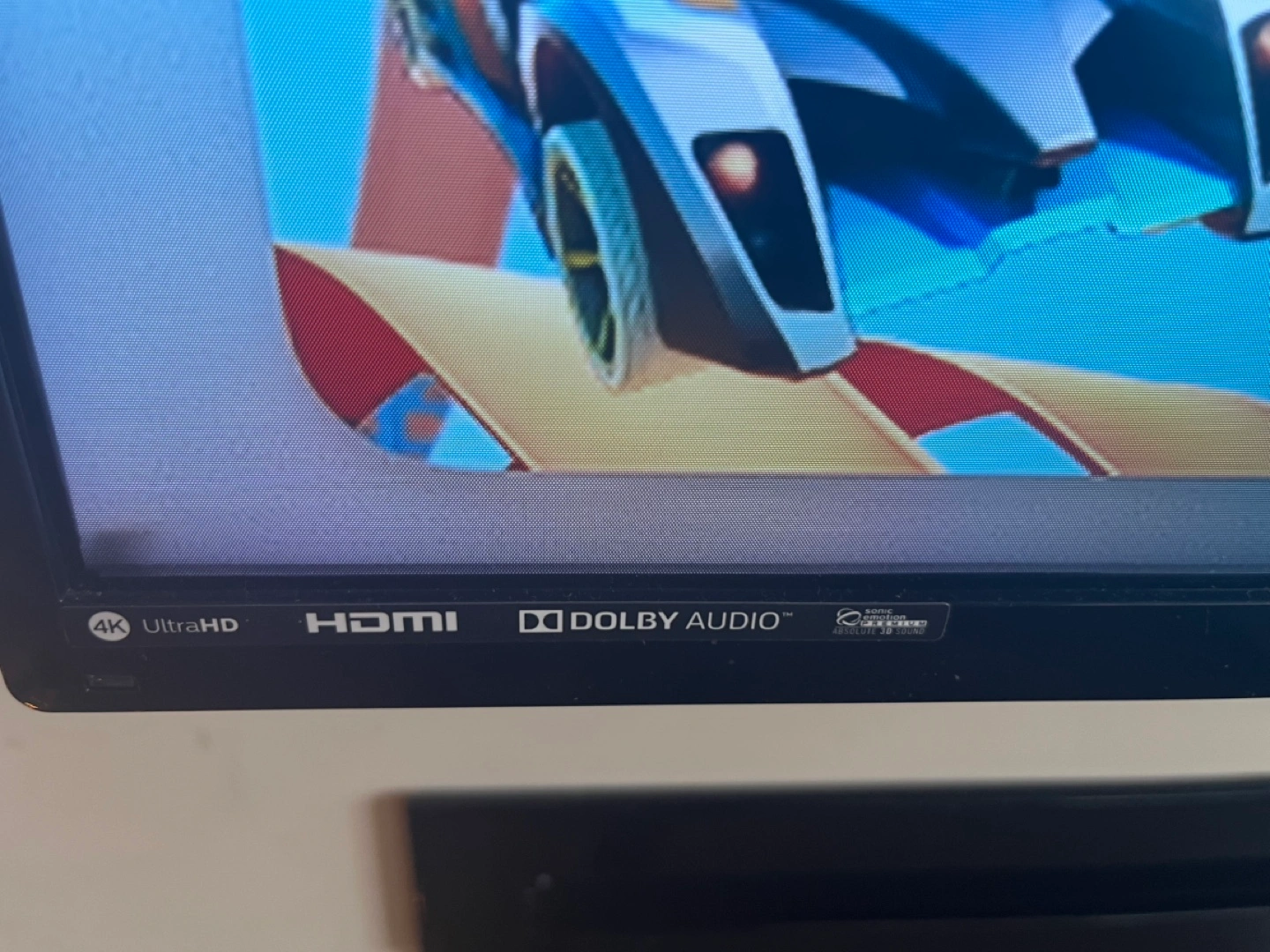 55 inch smart TV with 4K Ultra HD resolution and Dolby Audio. Includes remote. Comes with stand, but can be mounted on the wall.