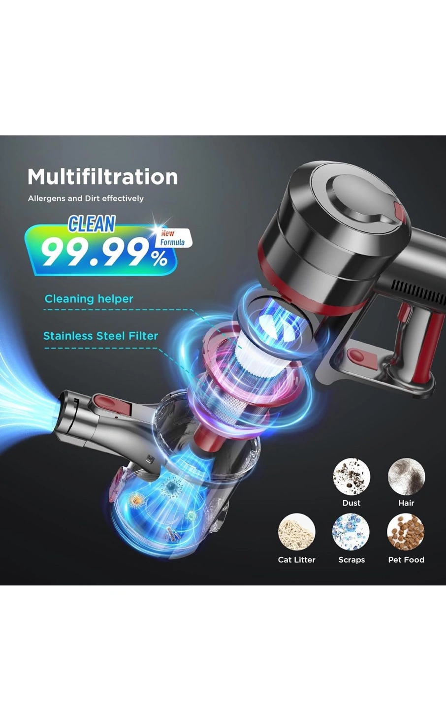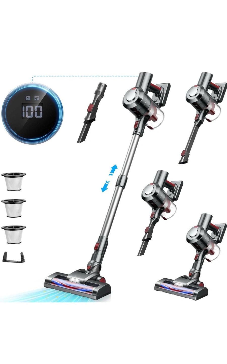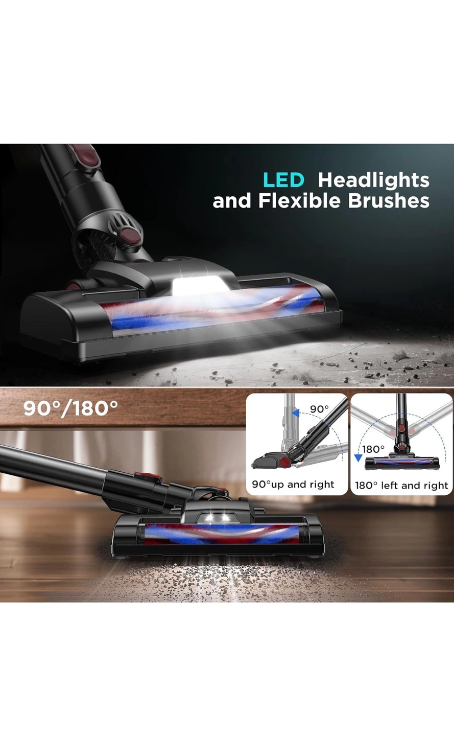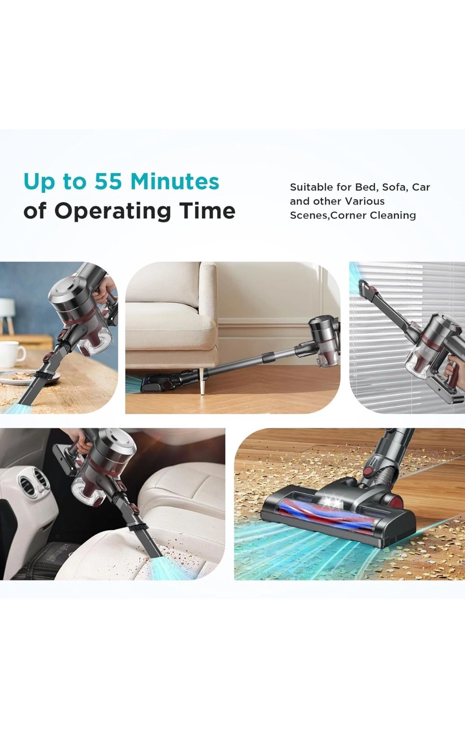 35Cordless vacuum cleaner. Up to 55 minutes of operating time. Features a stainless steel filter. Includes various attachments. 90°/180° rotation. Cordless Vacuum Cleaner: 450W 38K Pa with LED Display,Up to 55 Mins Runtime,Anti-Tangle Rollor,Cordless Stick Vacuum,Ultra-Lightweight Handle Vacuum Cleaners for Home Pet Hair Hard Floors Carpet Pick up from Oakville