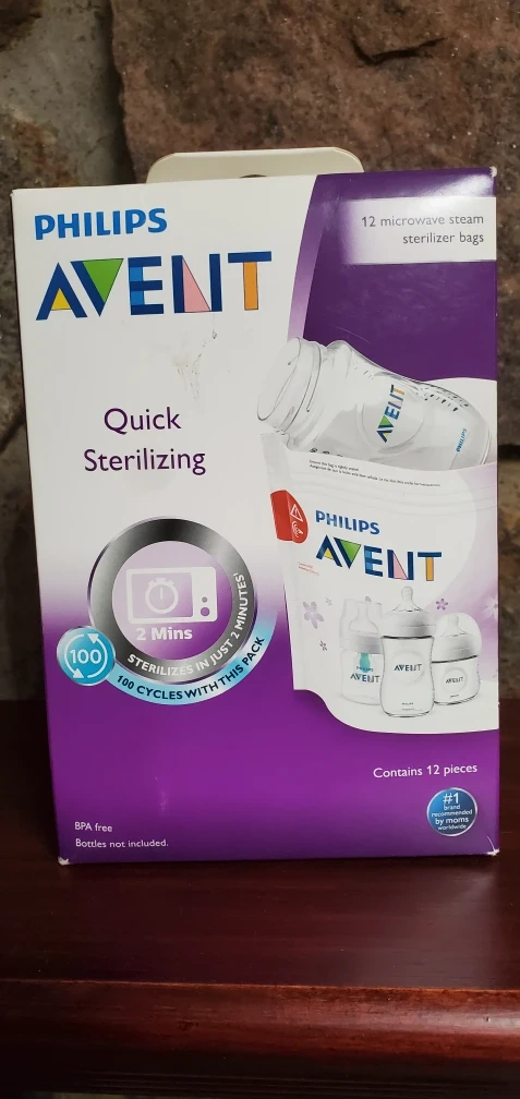 444Brand new in the box retails for $20 +taxes 12 microwave steam sterilizer bags. Quick sterilizing in just 2 minutes. 100 cycles with this pack. BPA free. Bottles not included. Kills 99.9% of bacteria in 2 minutes 12 microwave bags per package 20 uses per bag; 240 sterilization cycles per package Easy to use; clear step-by-step instructions on bag Check boxes help keep track of the number of times the bag has been used