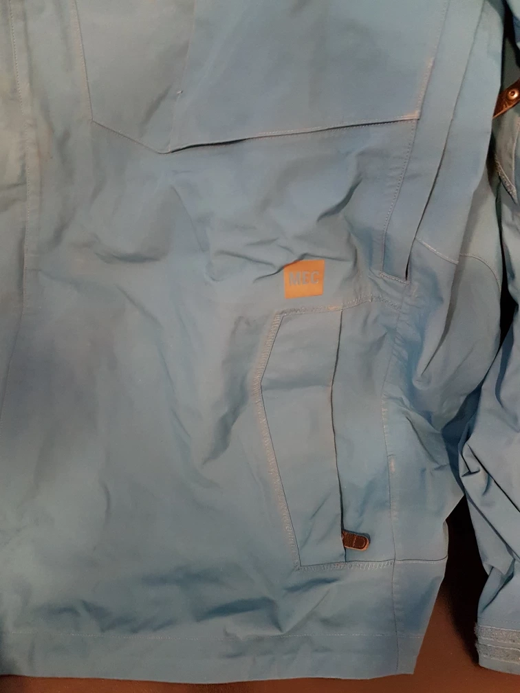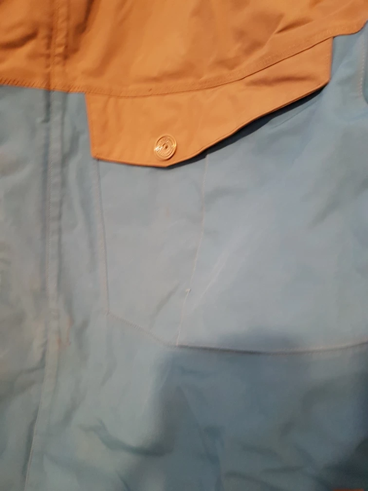 Blue and brown snowboard jacket with a hood. Equipped with RECCO Avalanche Reflector. Size Large. Gortex. No pet/ smoke home. Pick Up Cochrane, Alberta