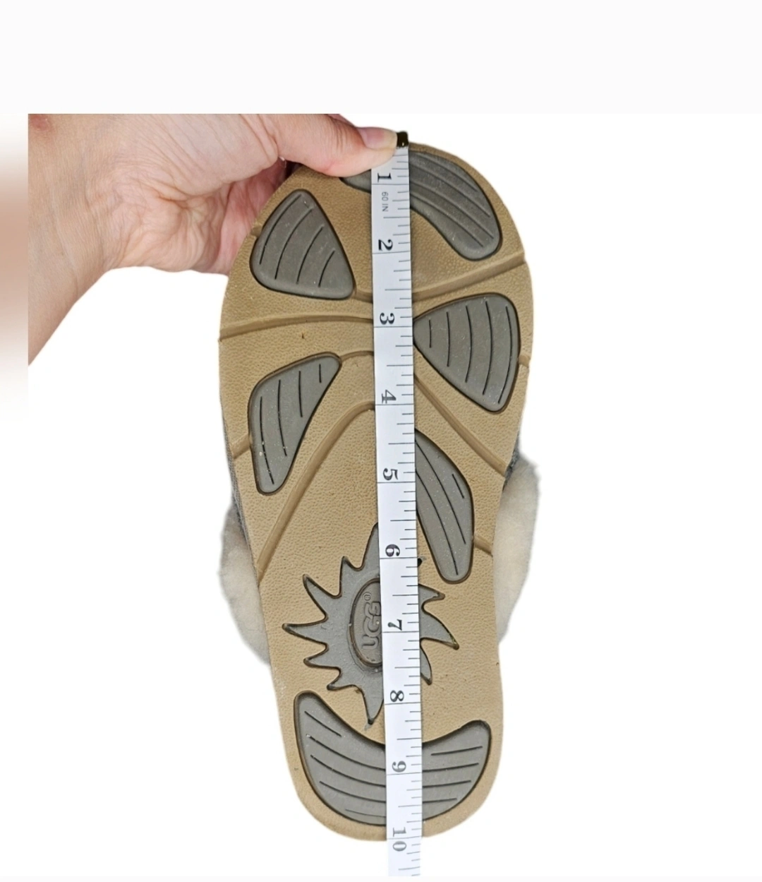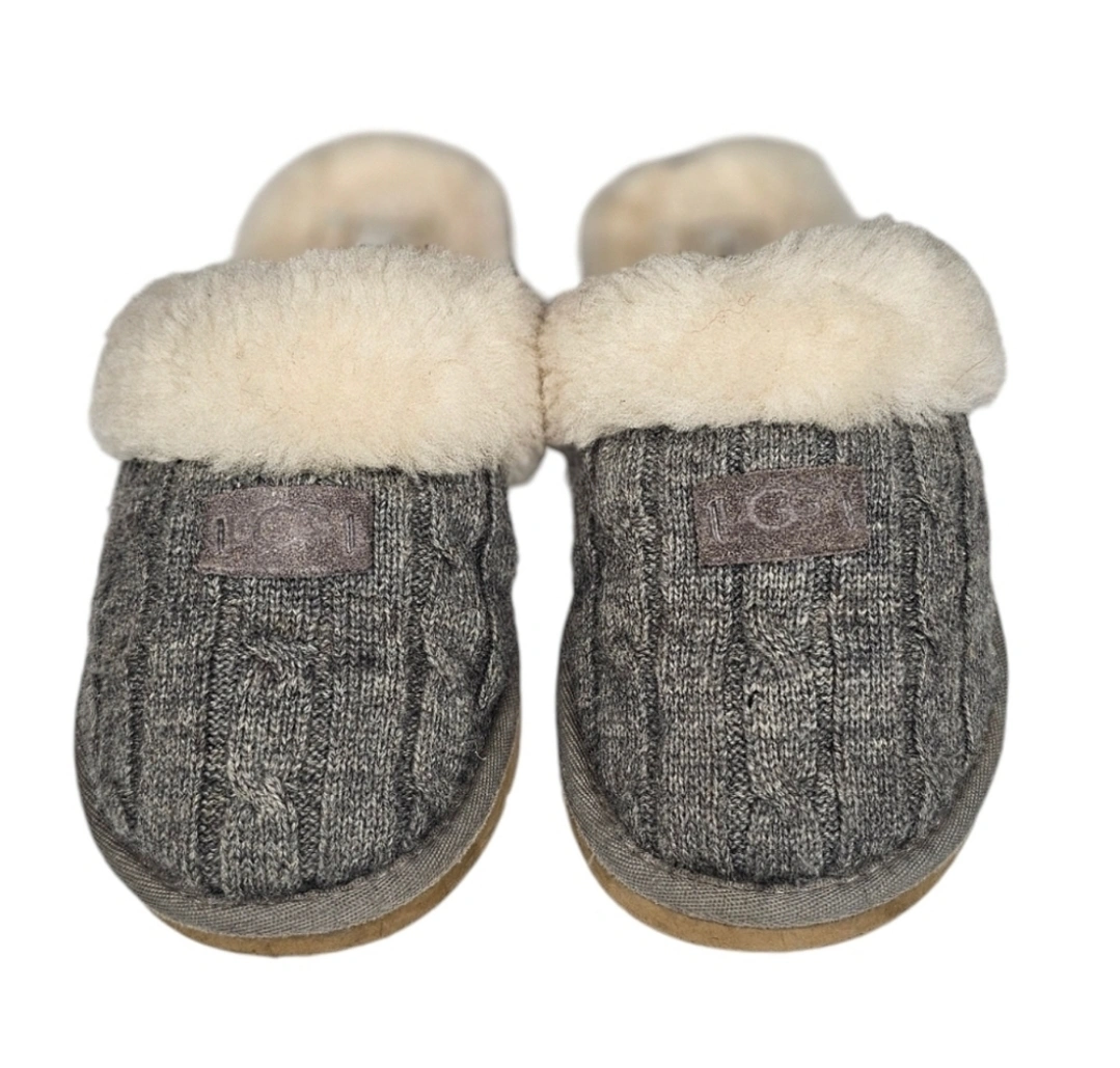 UGG Women's Grey Cable Knit Slippers w Sheepskin Lining size 5