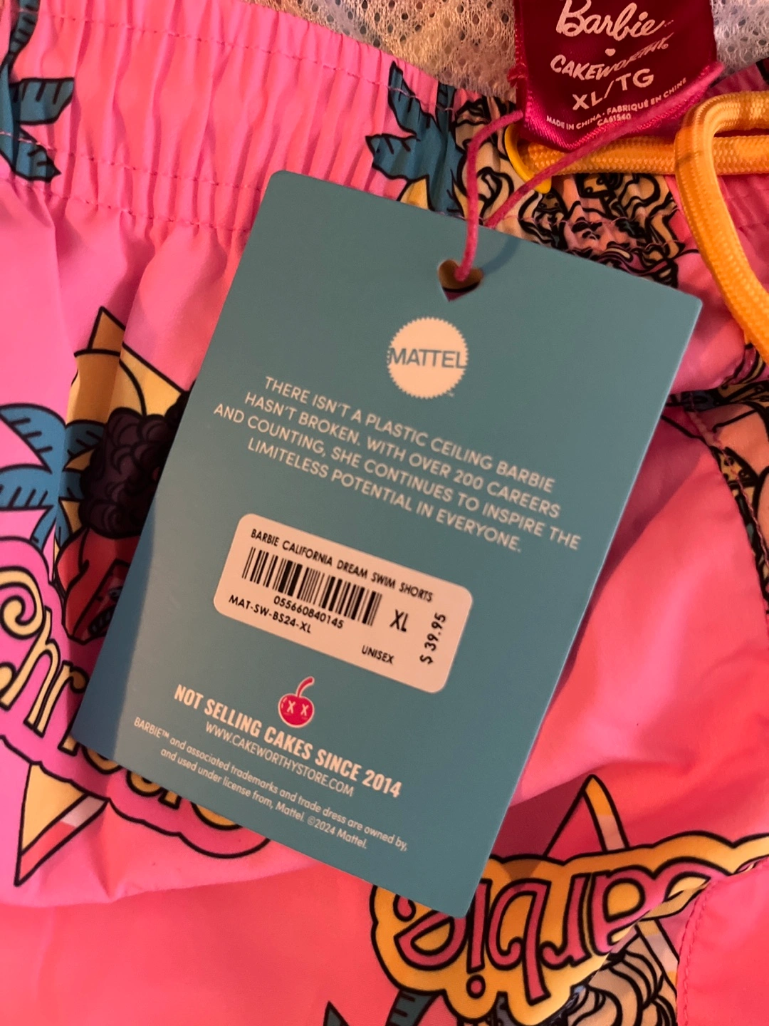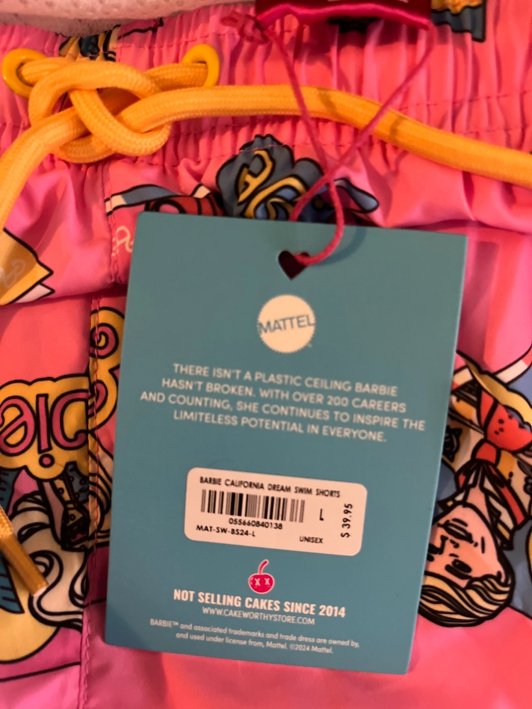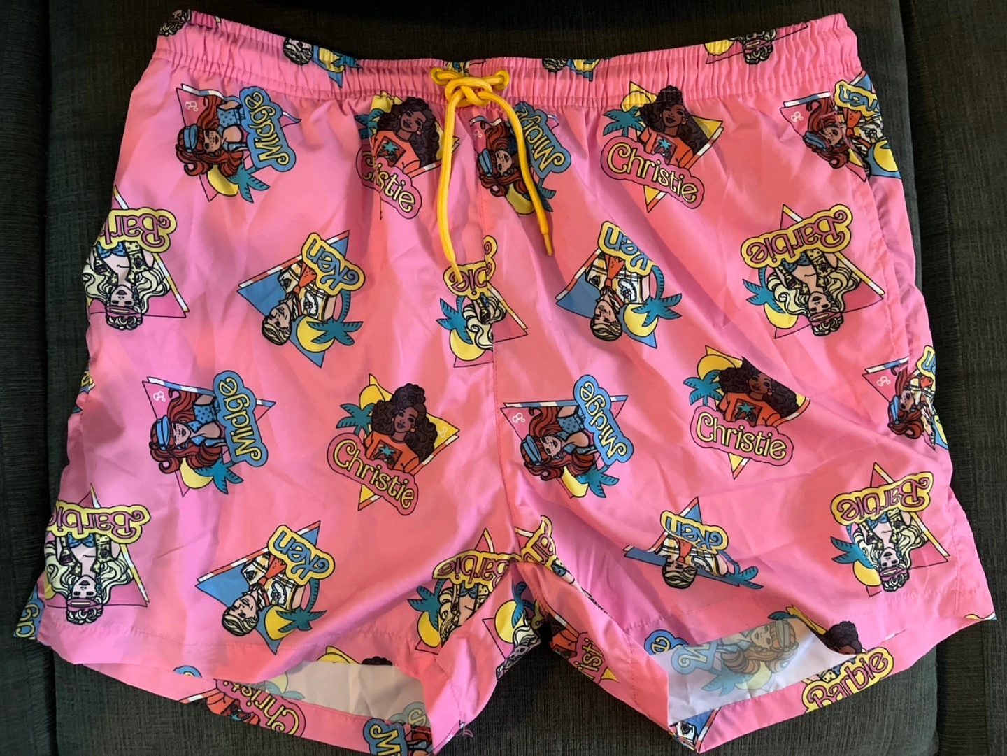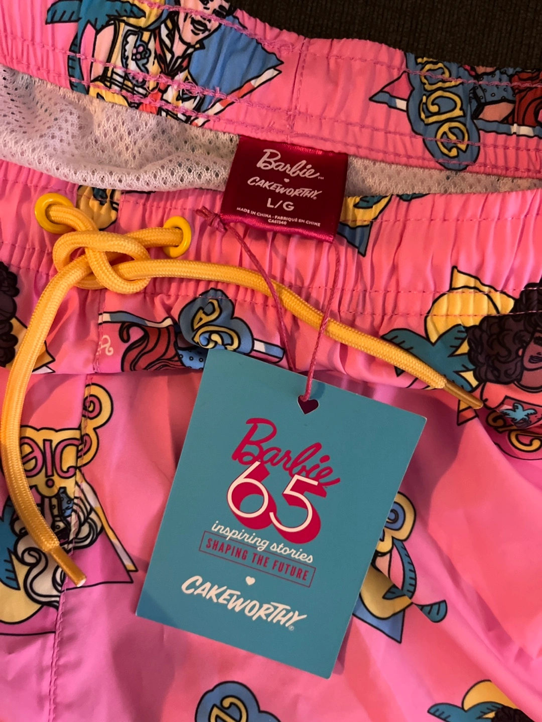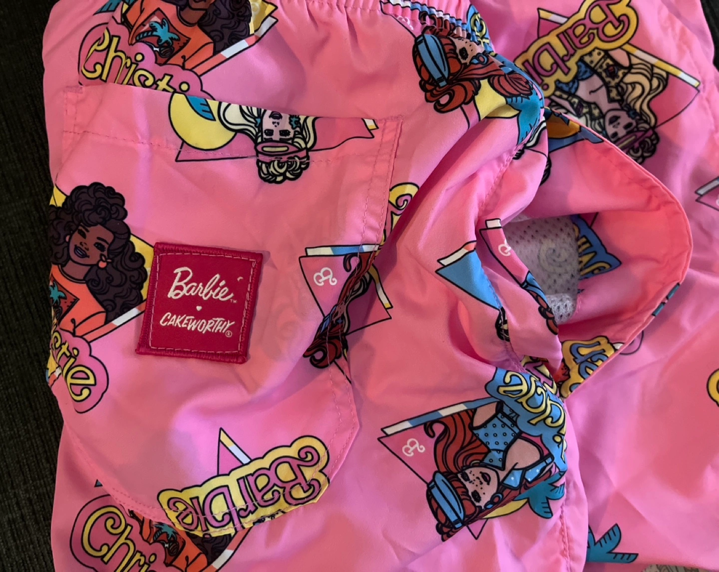 $15 each - NEW Barbie Cakeworthy swim trunks - L or XL