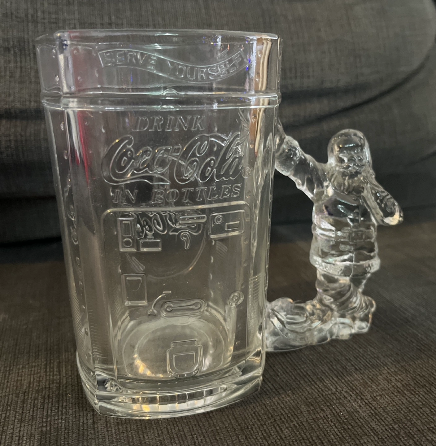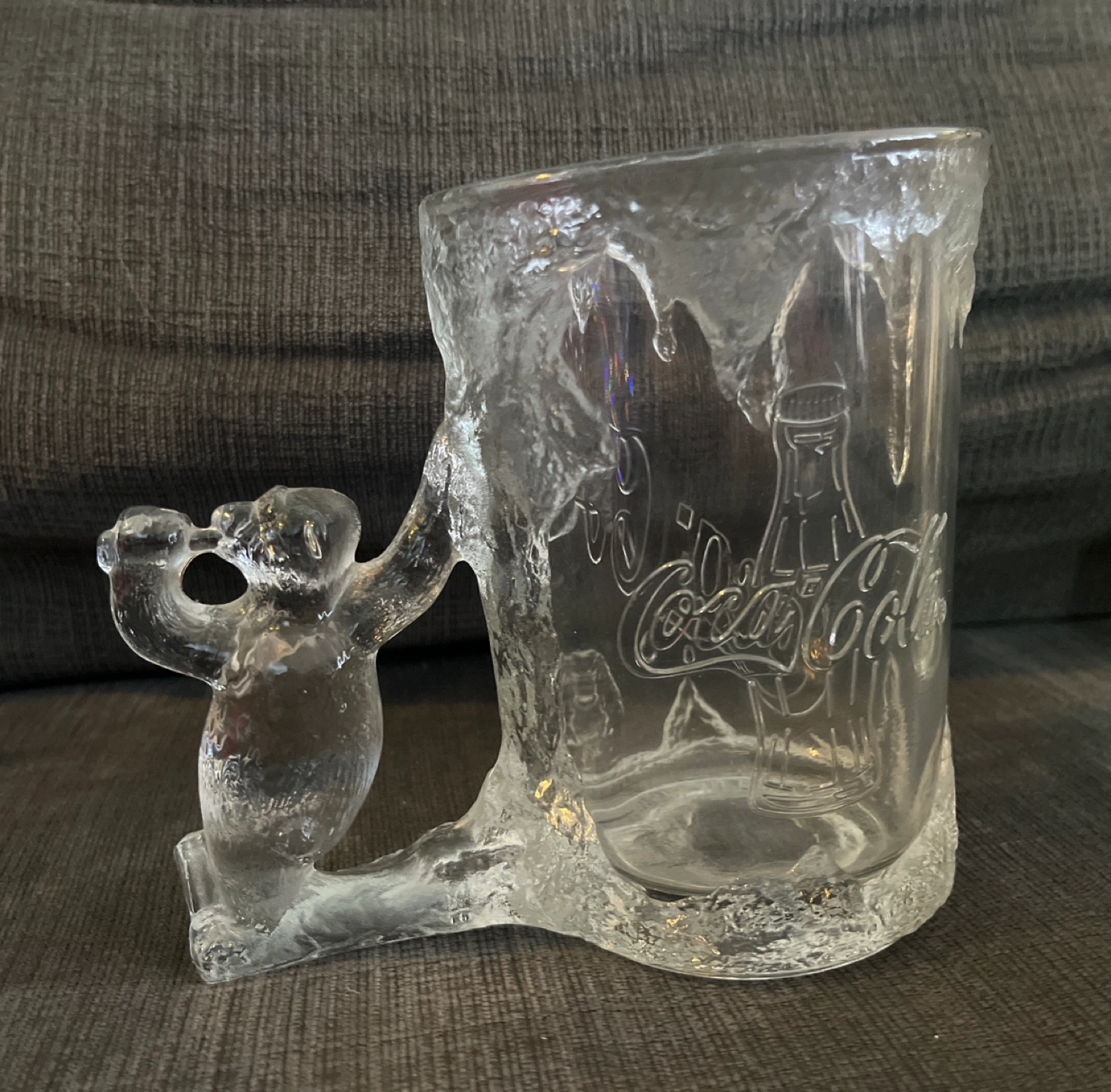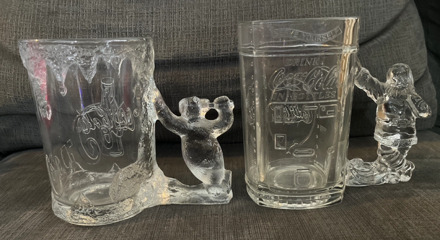 $15 each. These are two hefty glass Coca-Cola mugs. One features a Polar Bear drinking a Coke as its handle, the other features Santa Claus drinking a Coke as its handle. These are from 1997. Pickup only. St. Clair West & Spadina Road area.