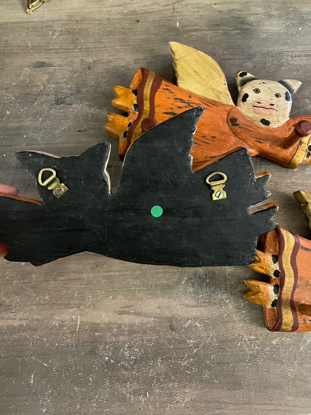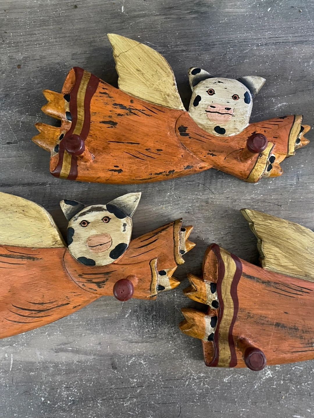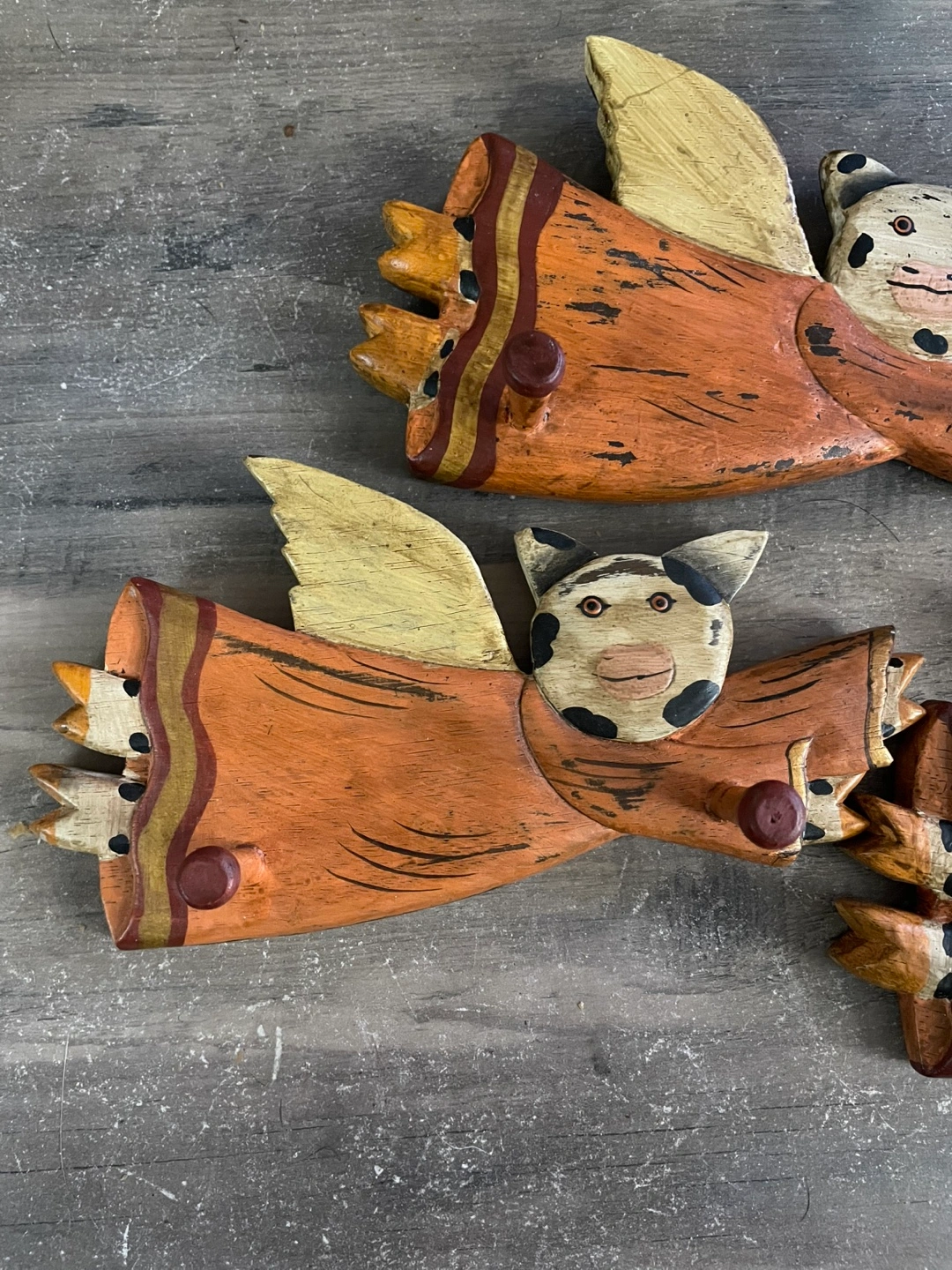 Set of three wooden angel coat hooks/Key Rack Painted with a cow design, they are great for adding a unique and whimsical touch to your home decor.