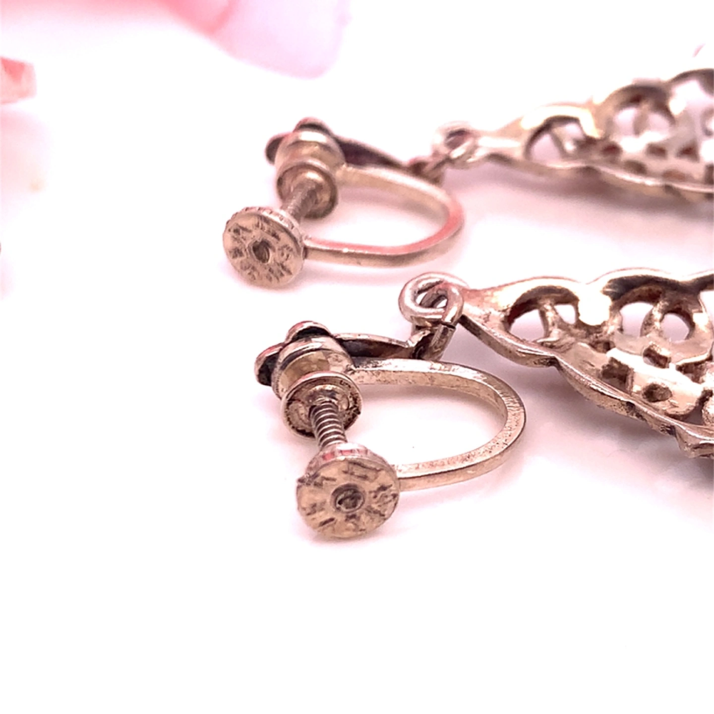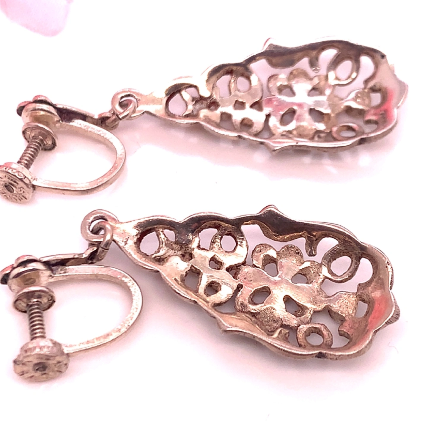 Vintage silver marcasite ring and earrings set. The ring is size 6.5 and the earrings are screw back. The set is in good condition. No missing stones