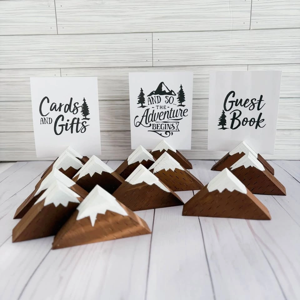 Adventure Wedding Decor: 10 Mountain Table Holders & 3 Signs