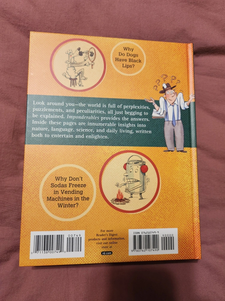Book by David Feldman. Imponderables provides answers to everyday questions that often go unanswered. Interesting and thought-provoking questions about everyday life.