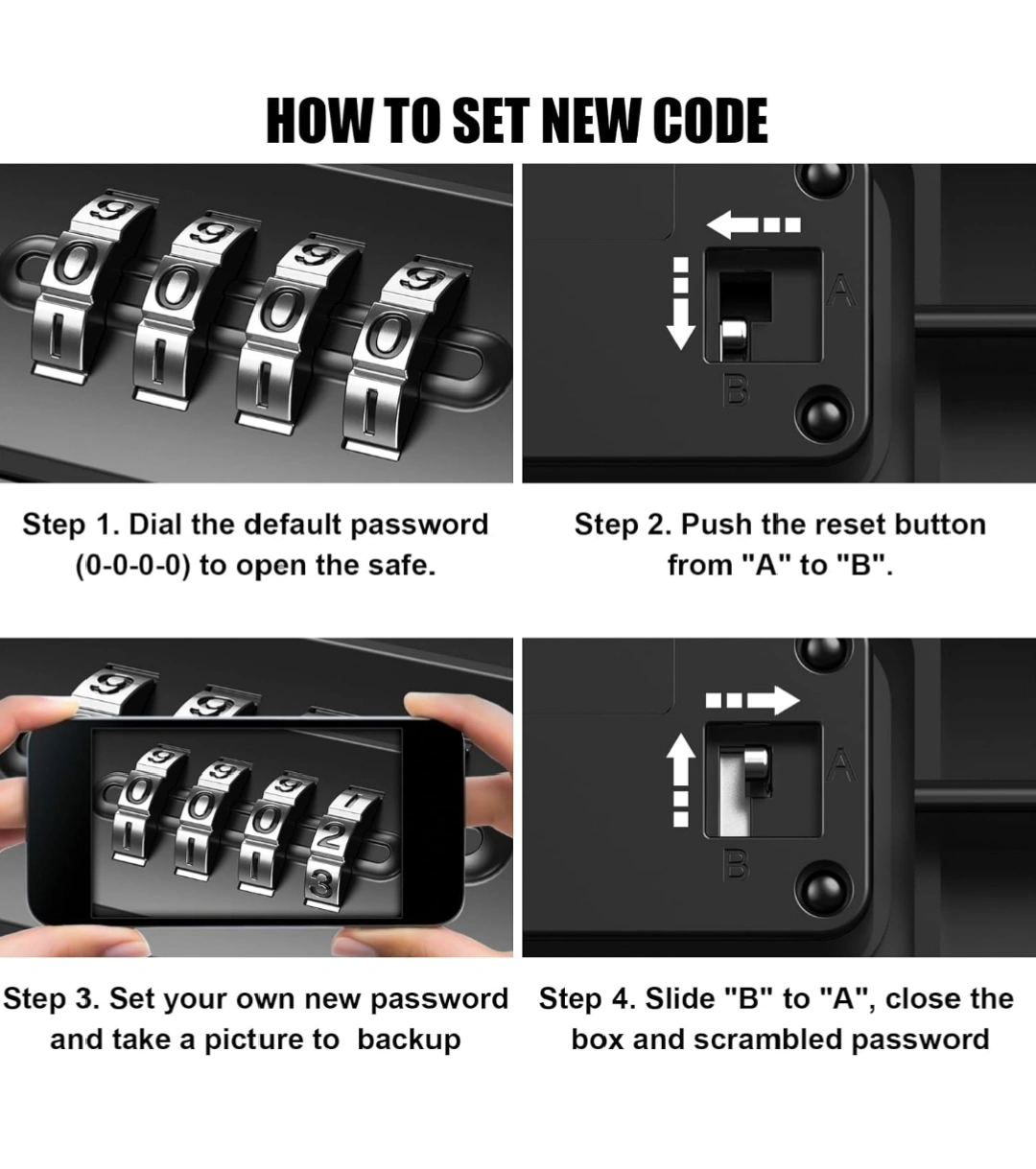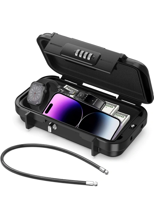 Diyife Travel Safe, [Waterproof] Portable Mini Beach Safe Heavy Duty 4-Digit Combination Lock Box, Anti-Theft Security Small Safe Box with Removable Wire Rope for Home, Office, Cars, Travel, Beach.