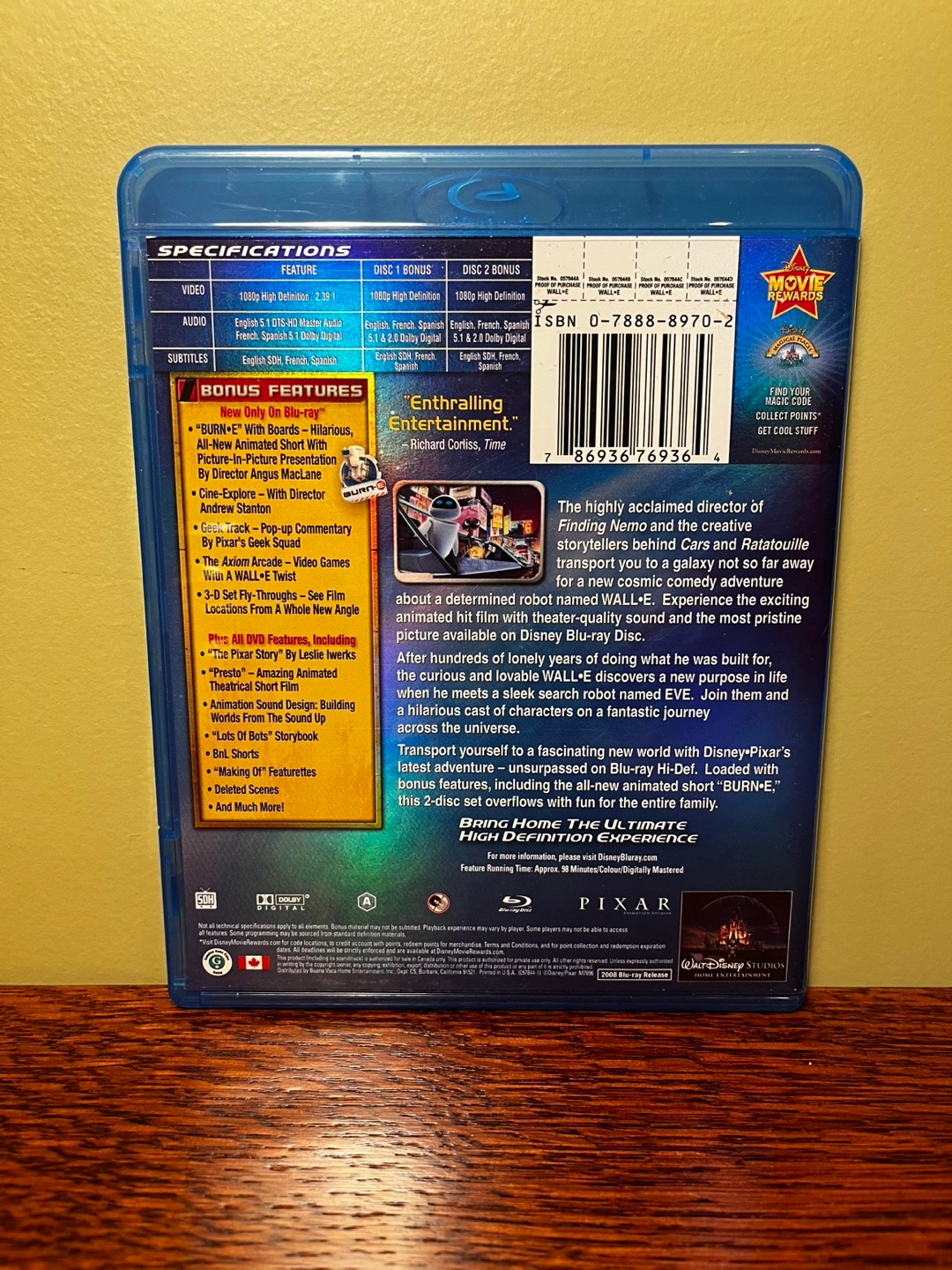 Wall-E (2008) Used blu-ray plays perfectly. Includes two discs – feature film and bonus features. No scratches on discs. Case is in excellent condition. Check my other listings for more a few more blu-rays and DVDs. Bundle them for a deal.