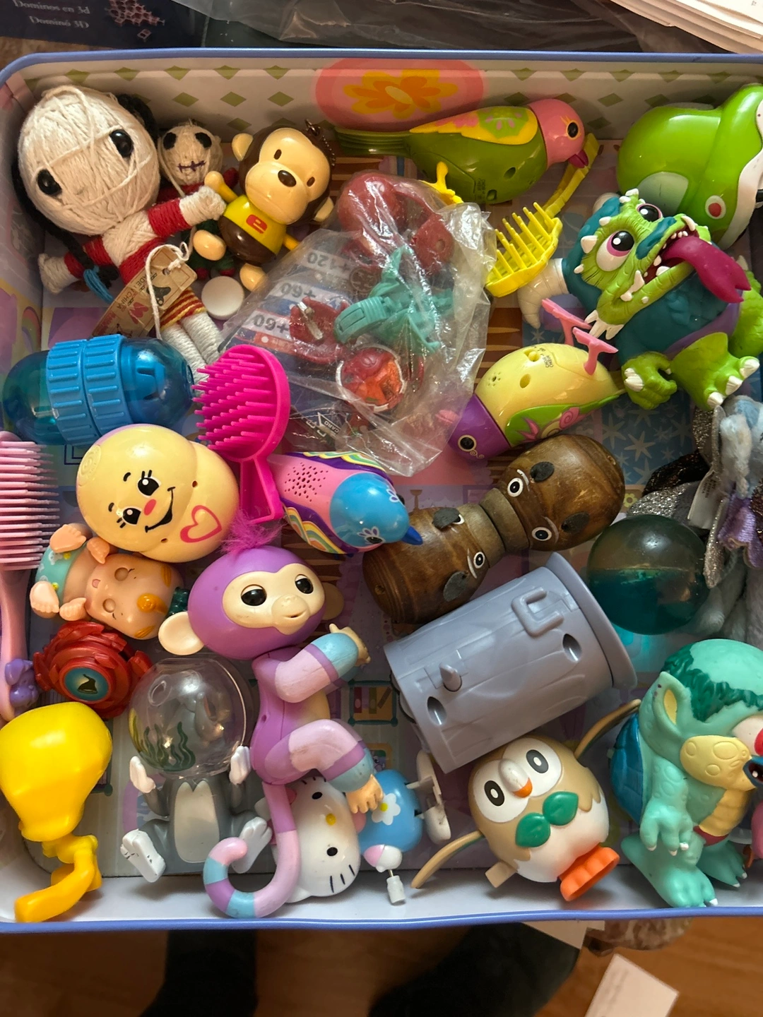 734A large lot of assorted toys, including a variety of characters, animals, and musical instruments. Free with any purchase