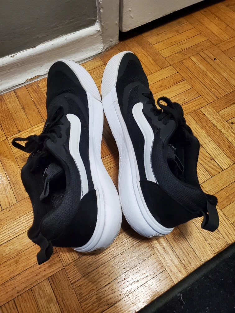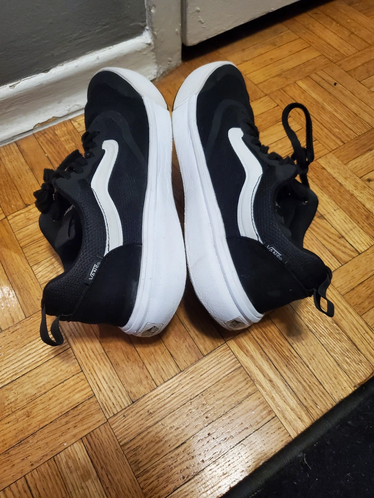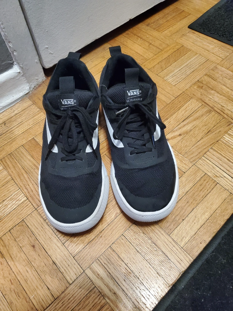 52$55 each only cash price firm no delivery. Black and white Vans UltraRange sneakers. good condition only cash price firm no delivery. I have more shoes all size for Men's, Women's ,Boys Girls and Kids for sale. I have and app Facebook and app Kijjijji. Location Cawthra and Lakeshore Mississauga.