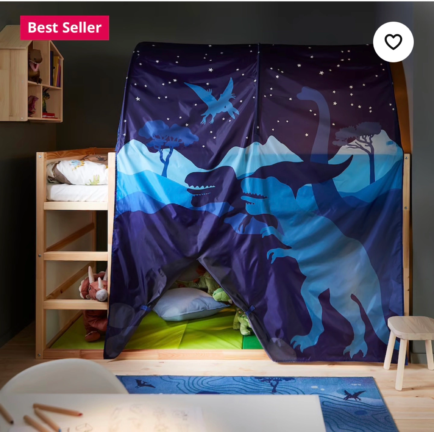This low bed is perfect for younger children, but also grows with them. You can turn it upside down when your child gets older – creating a play corner in no time with space for play and cozy times.