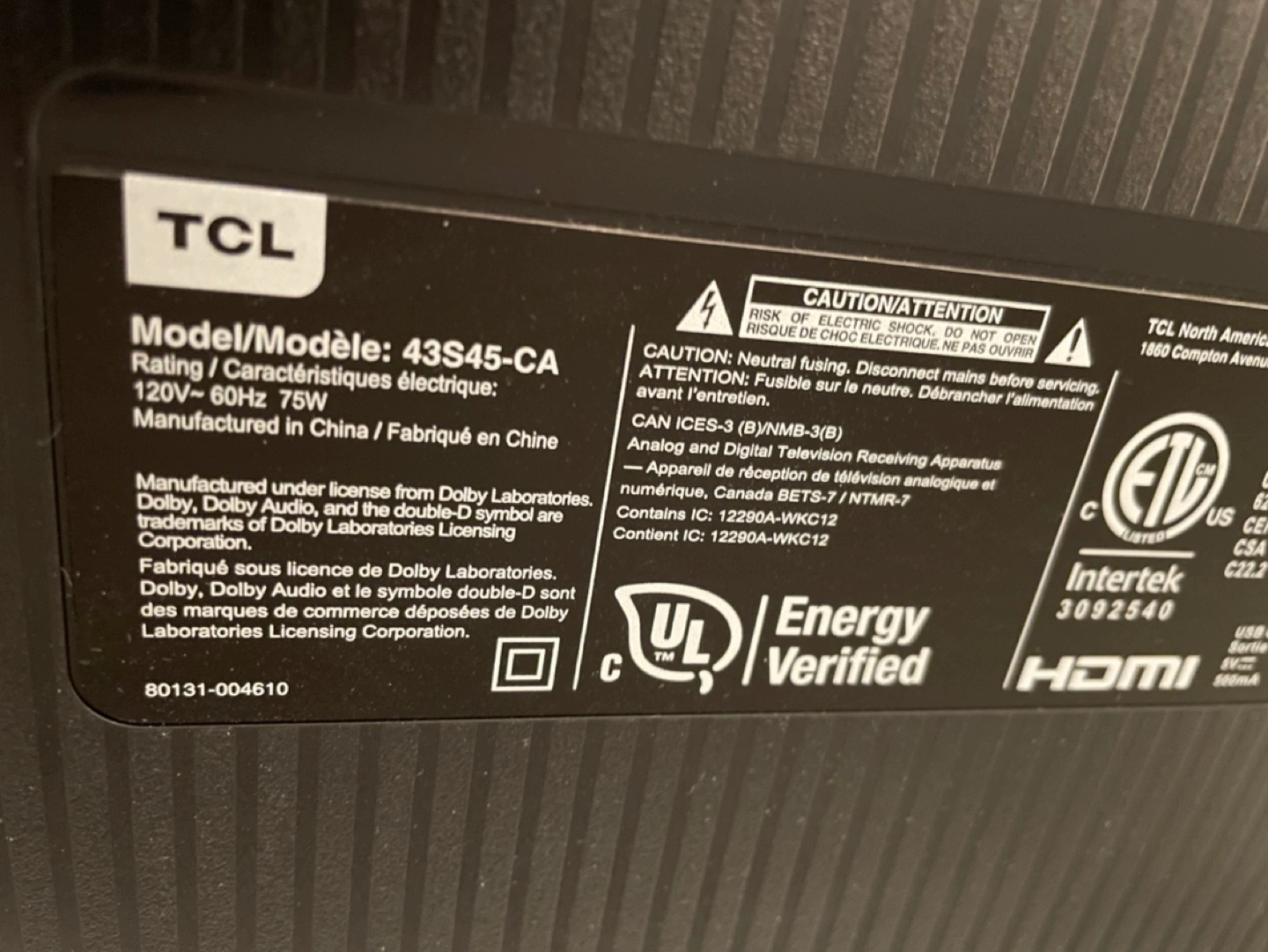 43” TCL Roku smart TV