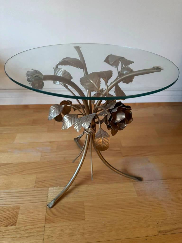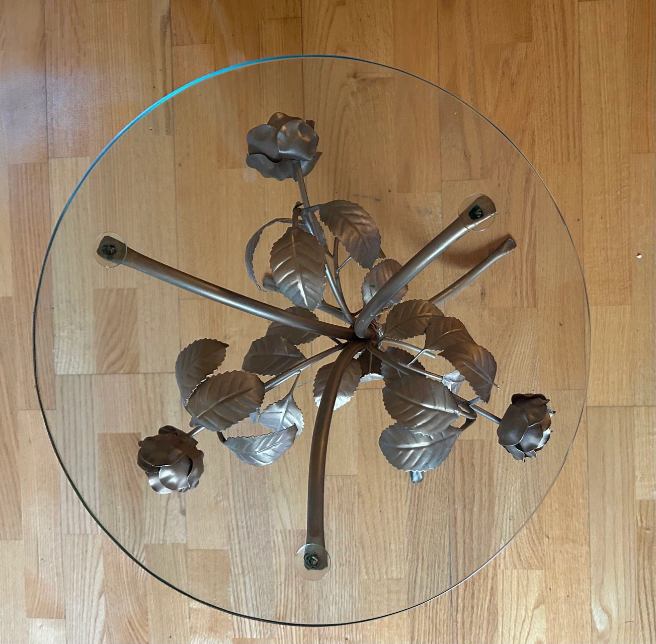 Elegant glass top side table with gold rose plated metal stand. Great addition to any room.