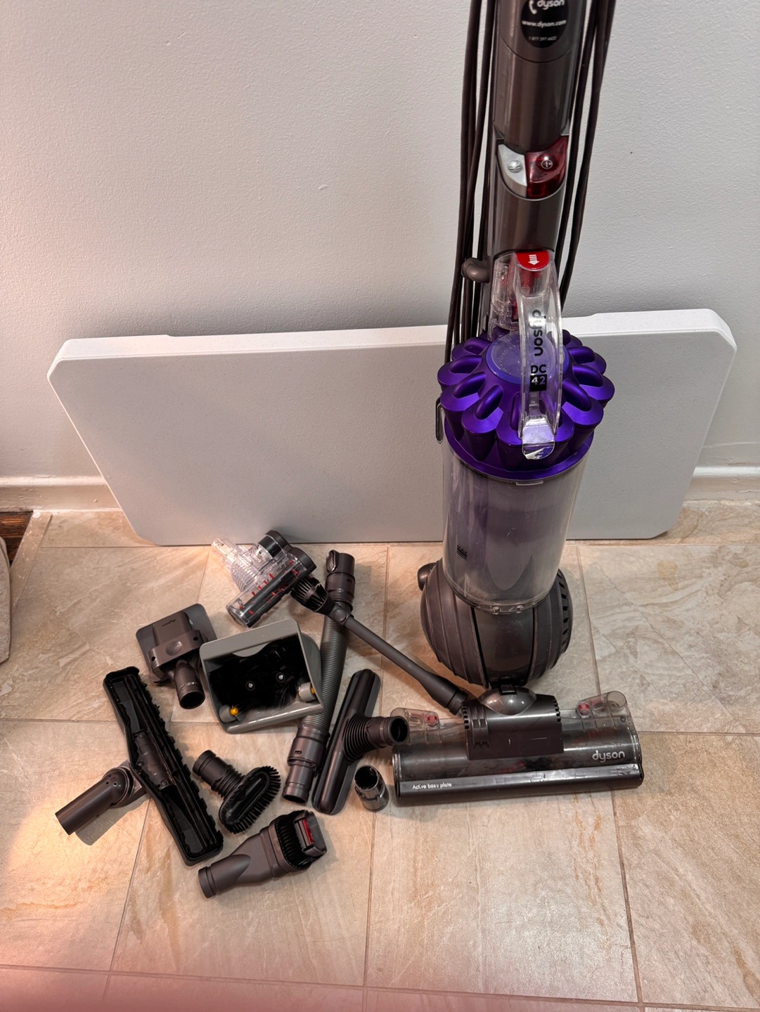 Dyson vacuum, model DC42. Comes with various attachments.all attachments are new never used except one. 5 attachments. Extra attachments $20. Each Just cleaned out filter ready to go