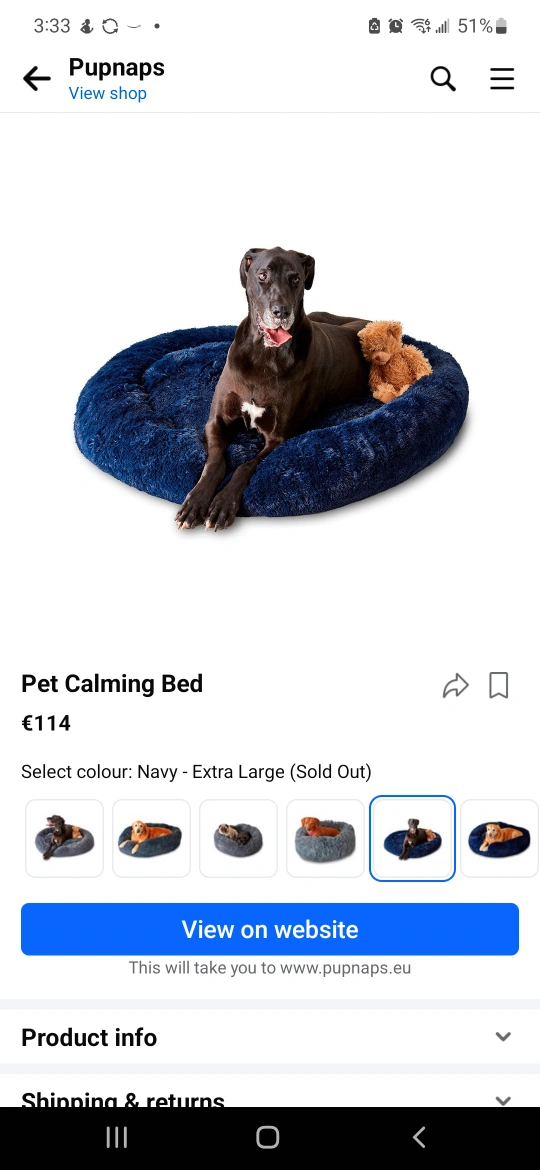 Pupnaps Pet Calming Bed - Extra Large - Navy