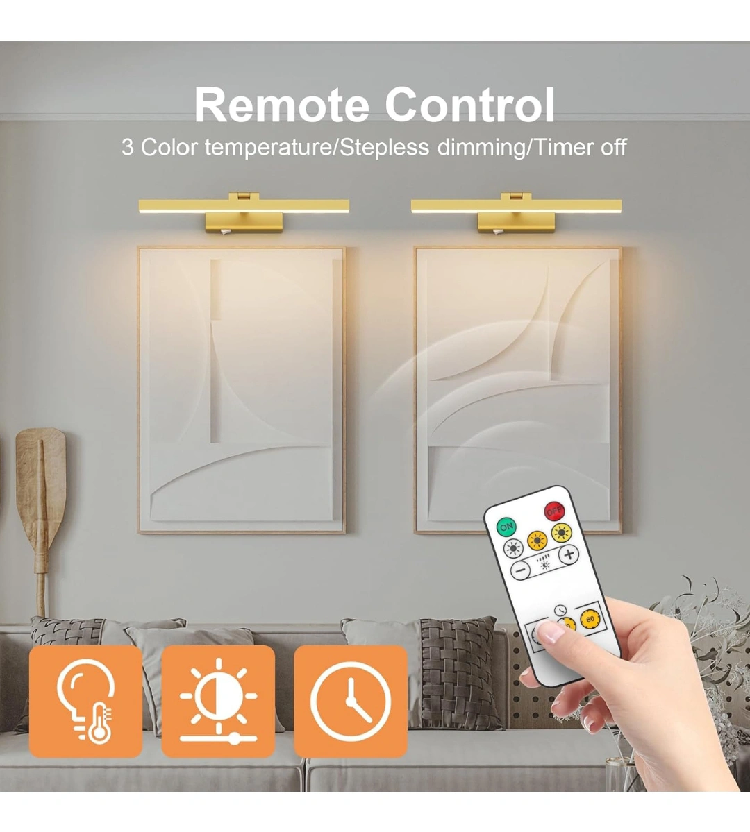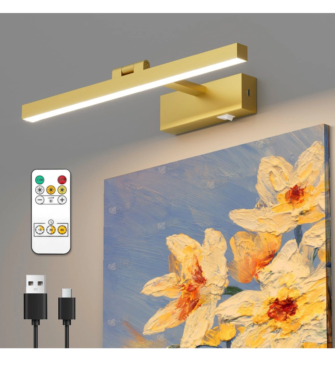 Gold Picture Light with Remote, USB Rechargeable