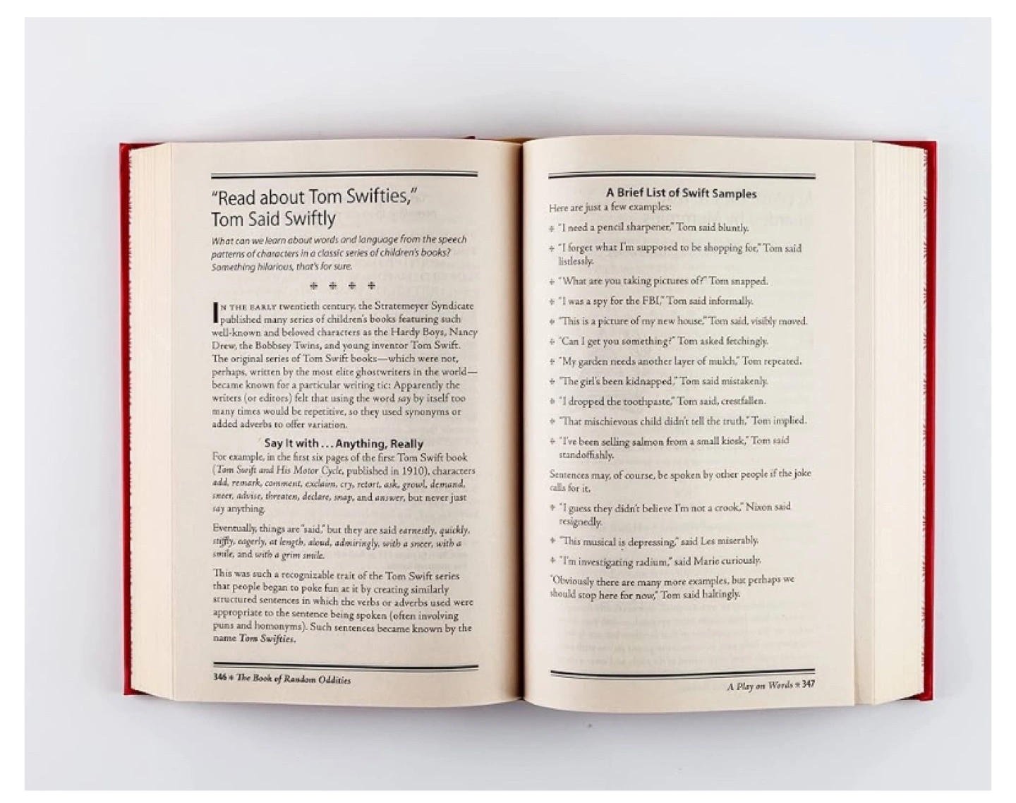 The Book of Random Oddities is a massive 704-page padded hardcover book that is packed with stories, lists, anecdotes, and quotes about words and language.