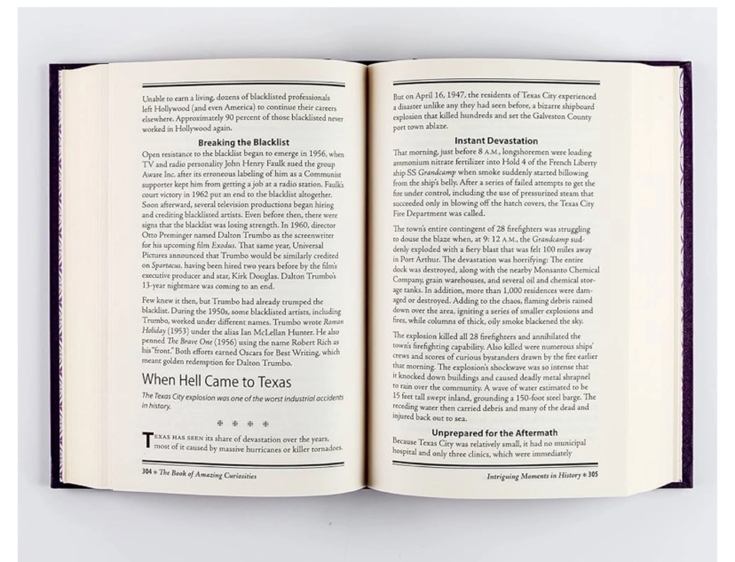 The Book of Amazing Curiosities contains hundreds of articles, lists, quotes, and anecdotes designed to pique the interest and engage the mind.