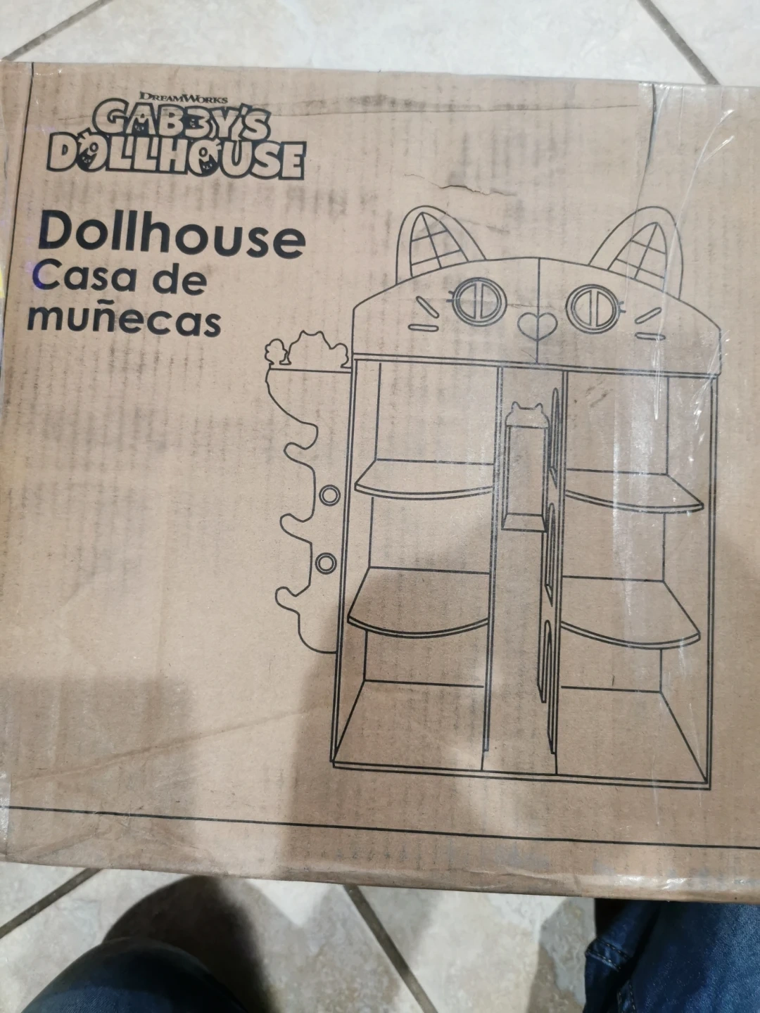 DreamWorks Gabby's Dollhouse toy set. Features a multi-level playhouse with colourful rooms and accessories. Includes the main dollhouse structure and some accessories. Suitable for imaginative play.