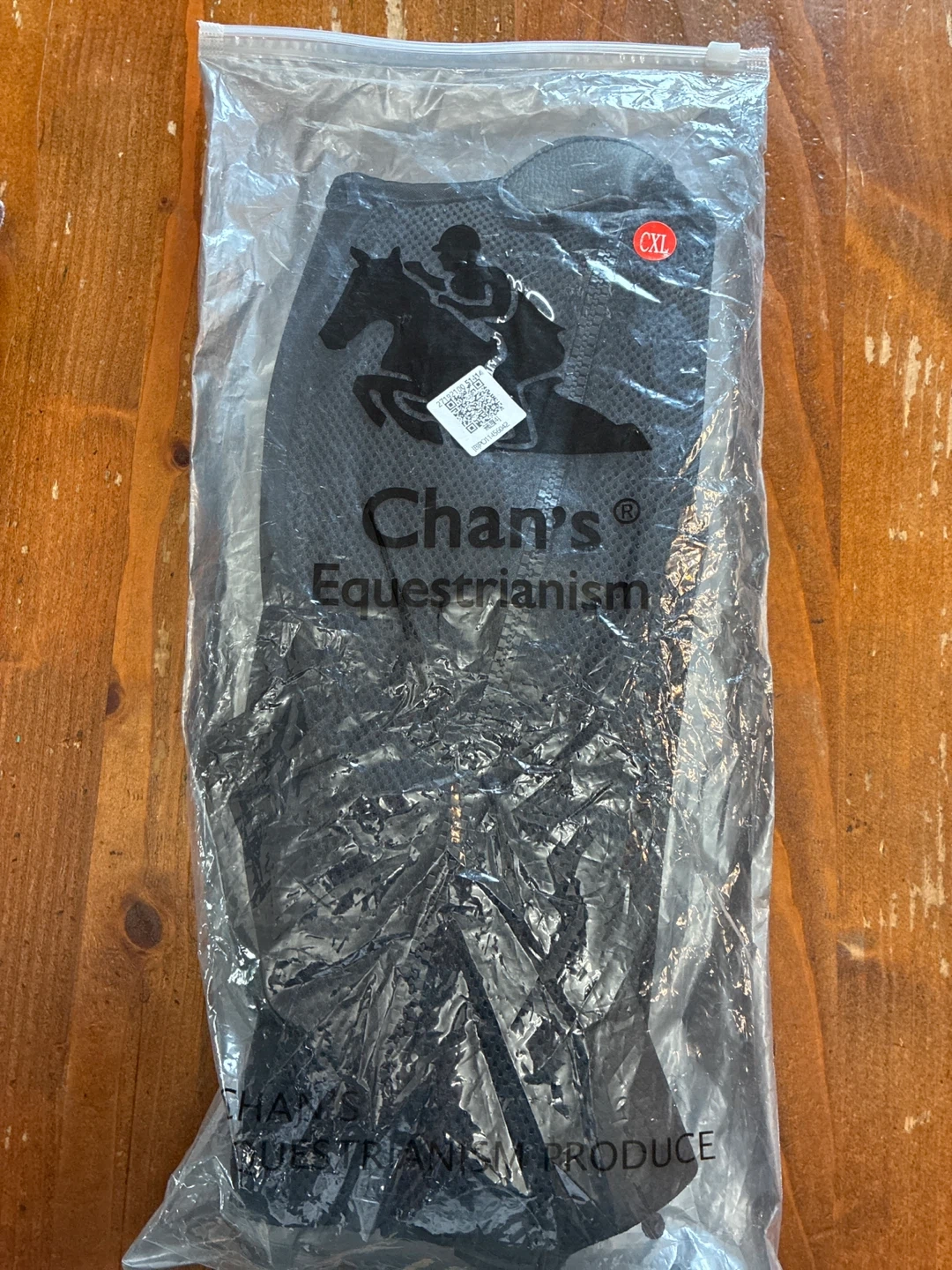 Chan's Equestrianism riding half chaps in black. Size child XL .