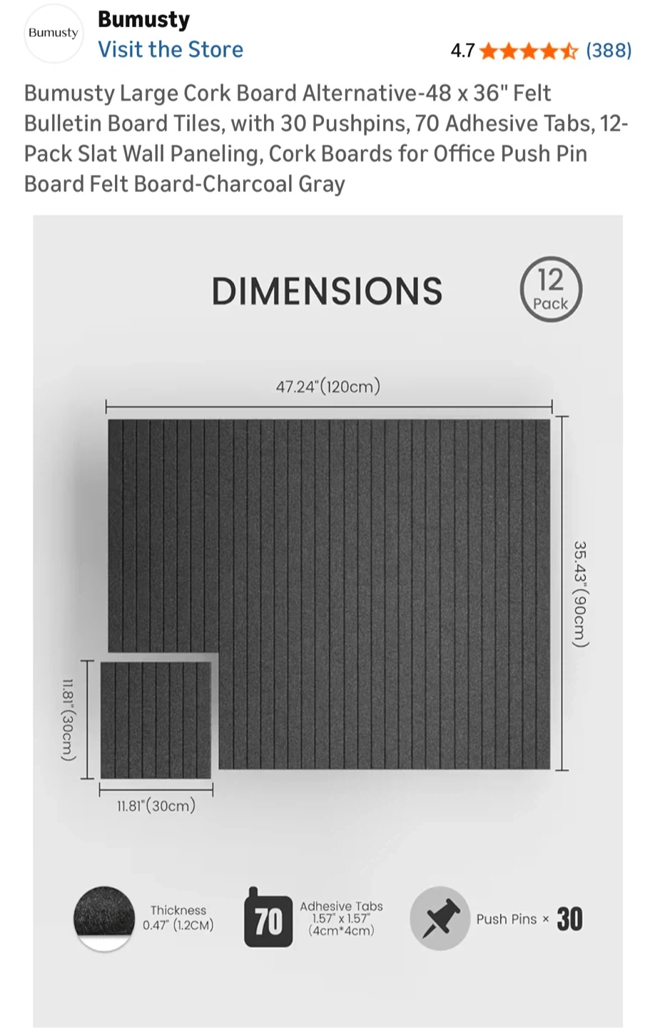 These are Bumusty charcoal gray solid bulletin board tiles. panels. Includes 70 adhesive tabs and 30 pushpins.