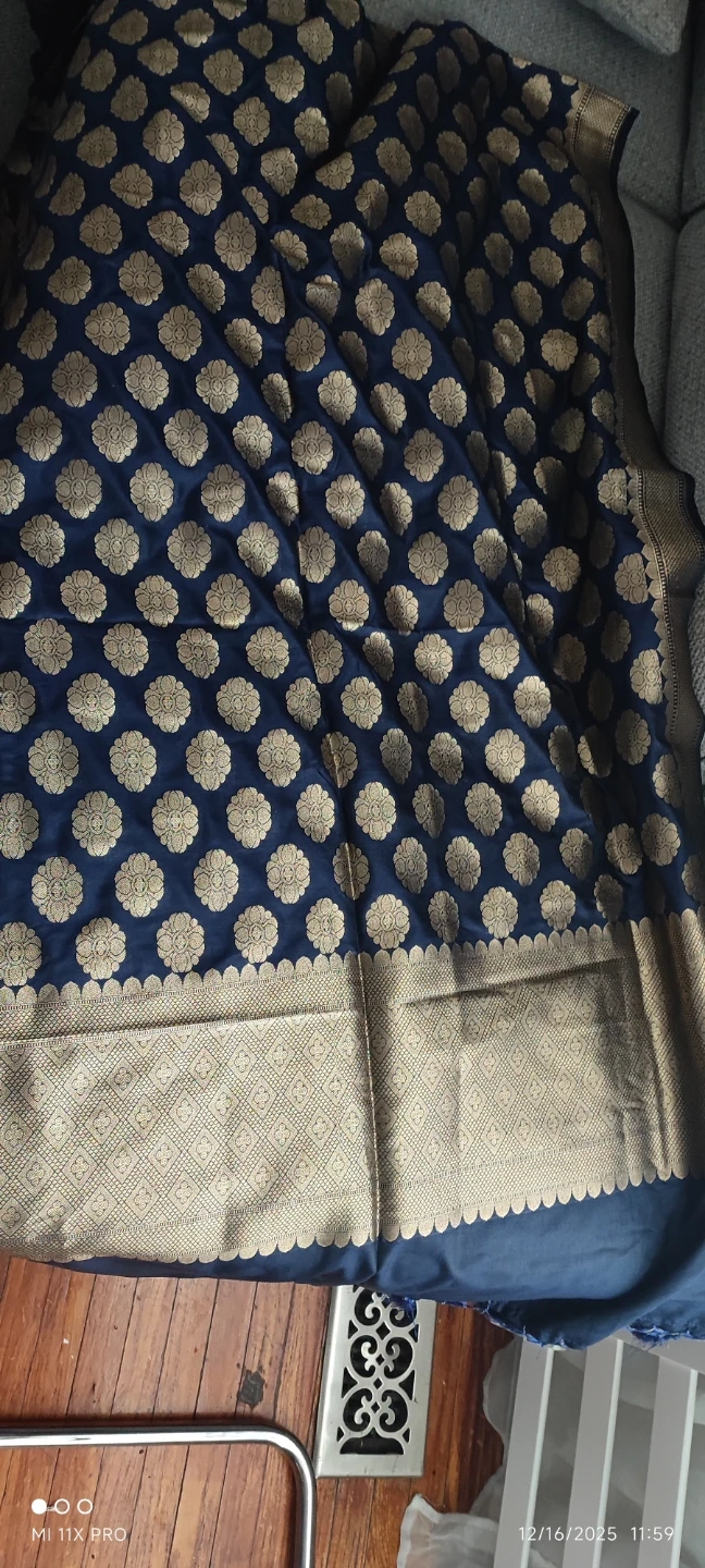 🥕 Banarasi Silk cloth ,Blue & Gold Patterned Fabric