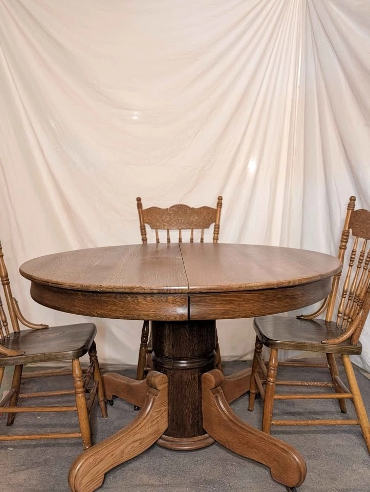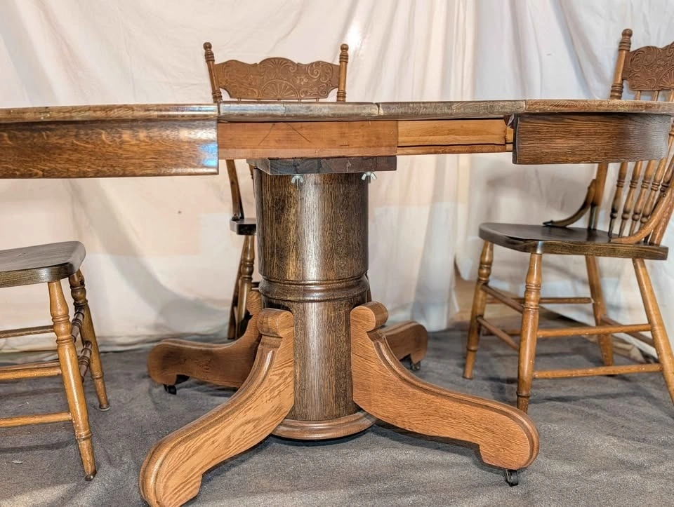 Antique Solid Oak Pedestal Dining Set – 3 Chairs – Restored