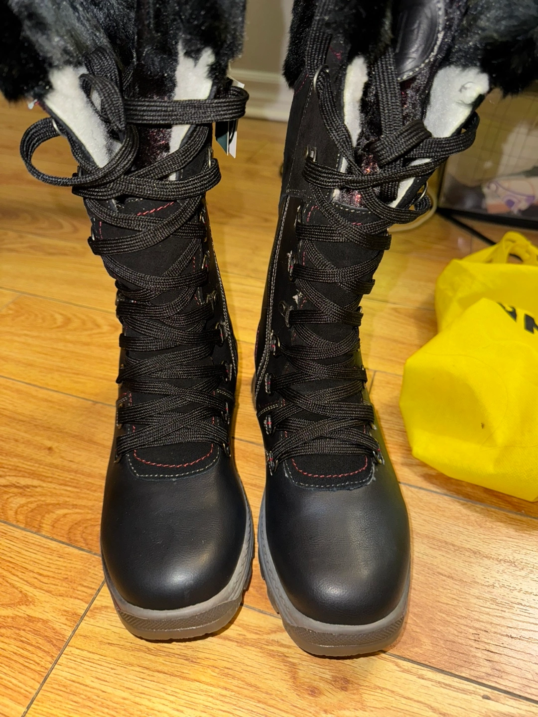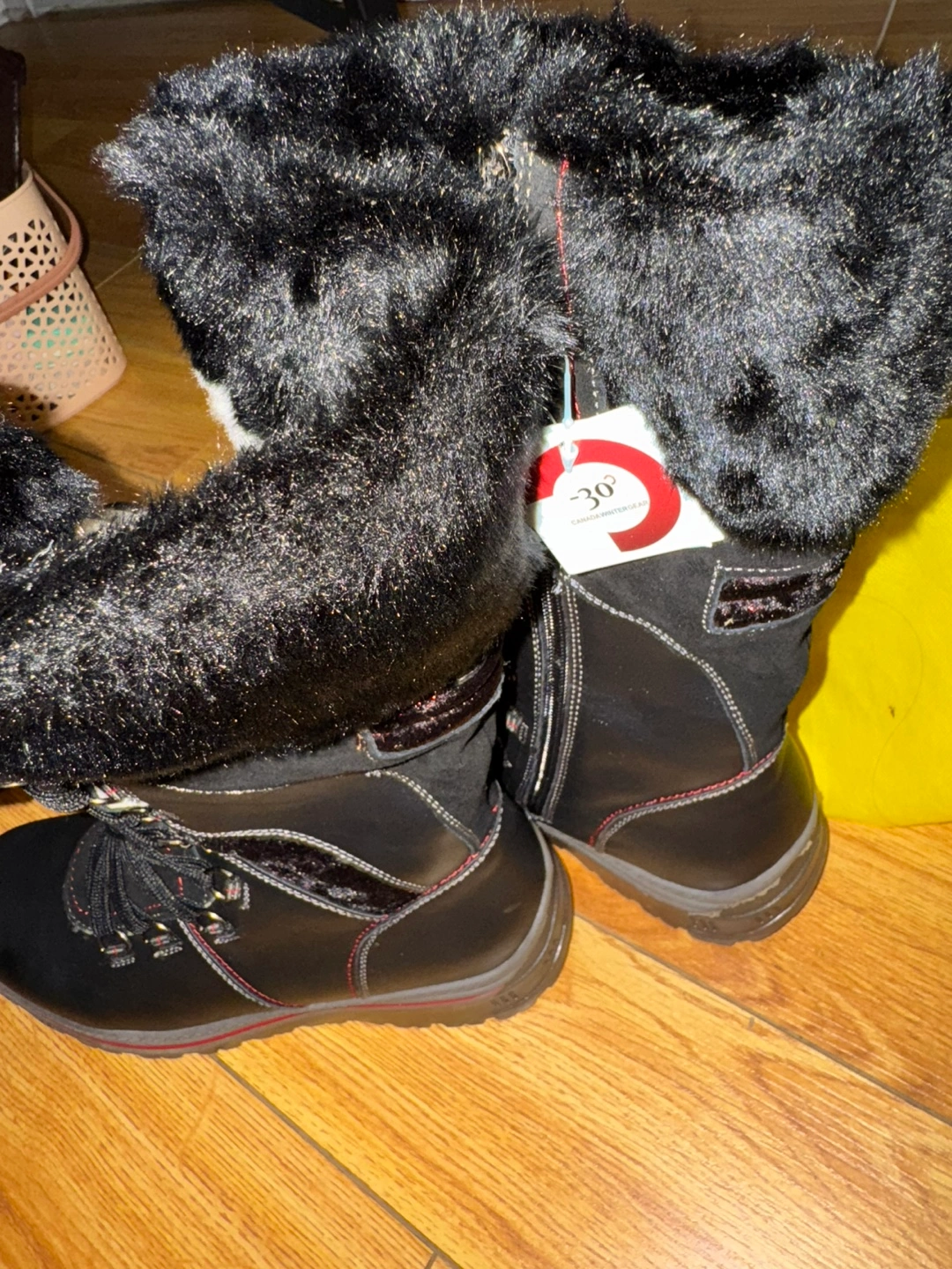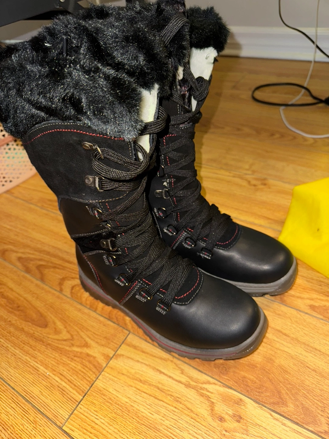 Black winter boots with faux fur. Lace-up with zipper. In excellent condition.